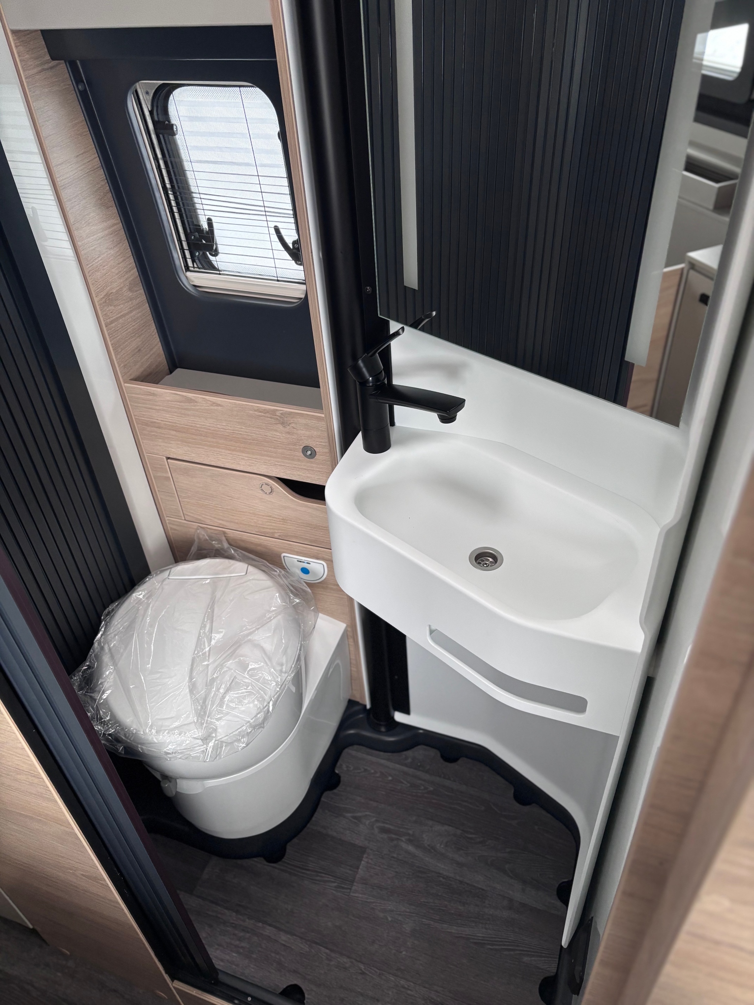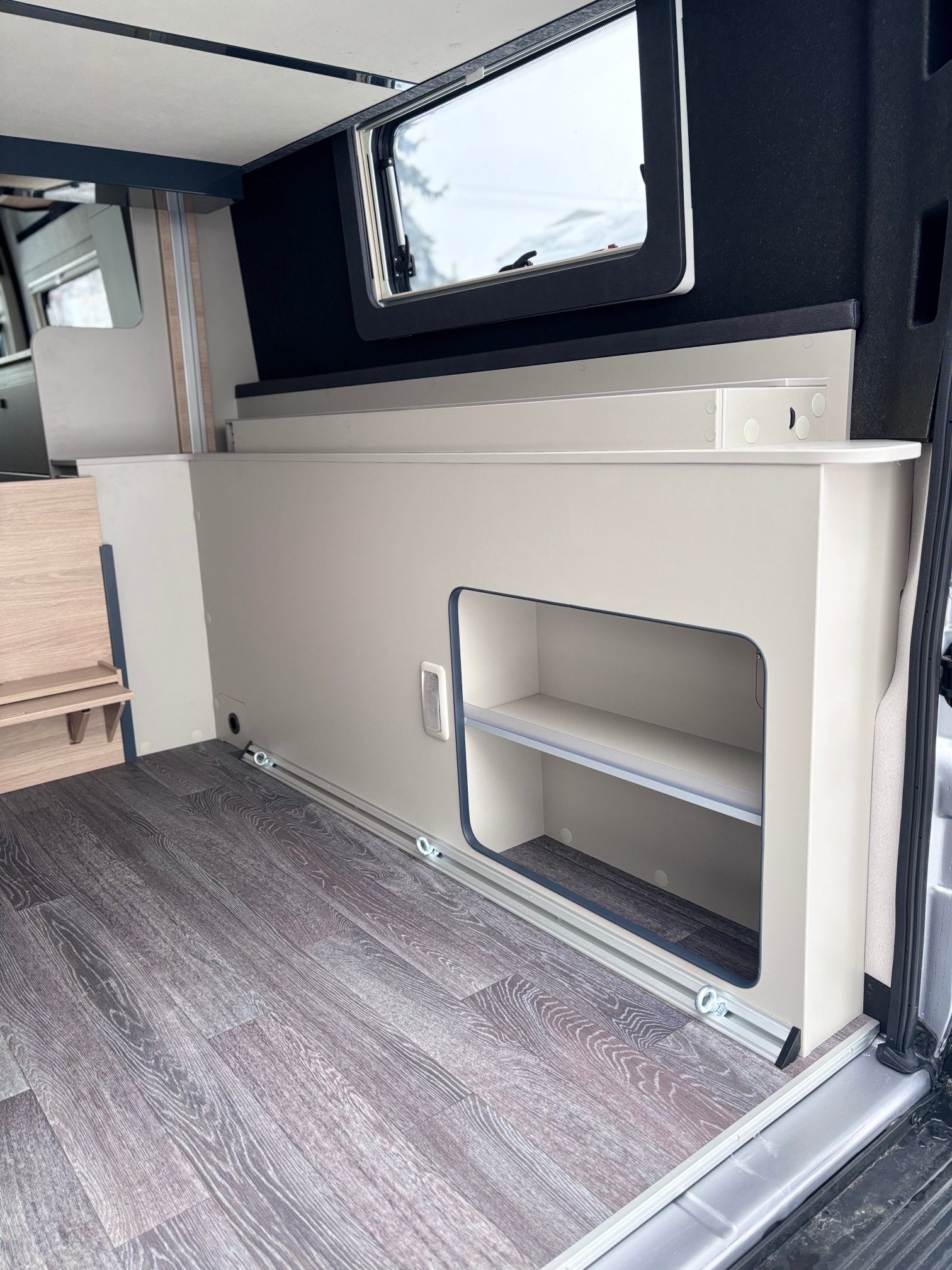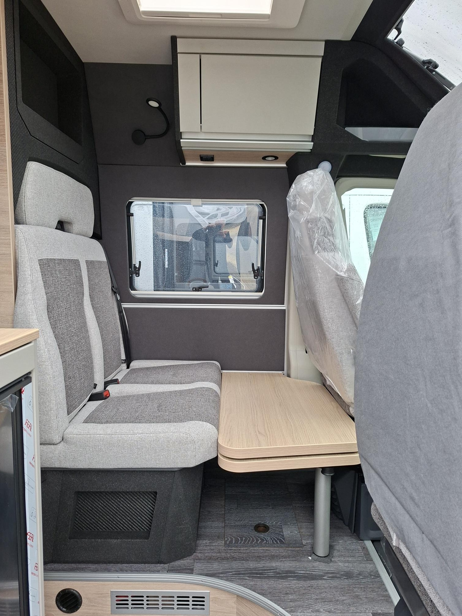 Mosogató, 84 L hűtő 7,5 L-es fagyóval, hűtőszekrény, 2 égőfejes tűzhely, mosdófülke beépített bio-Wc-vel és zuhanyzóval, Thetford elfordítható kazettás WC, rádió beépítési hely 2 hangszóróval a lakótérben, kifordítható asztal, szúnyoghálós ajtó, elektromos fellépő, 70 cm x 50 cm-es tetőablak, kombi roló, EvoPore HRC matracok, olvasólámpa, térelválasztó, LED belső világítás, TRUMA iNetX hűtésvezérlő panel, Truma gázfűtés