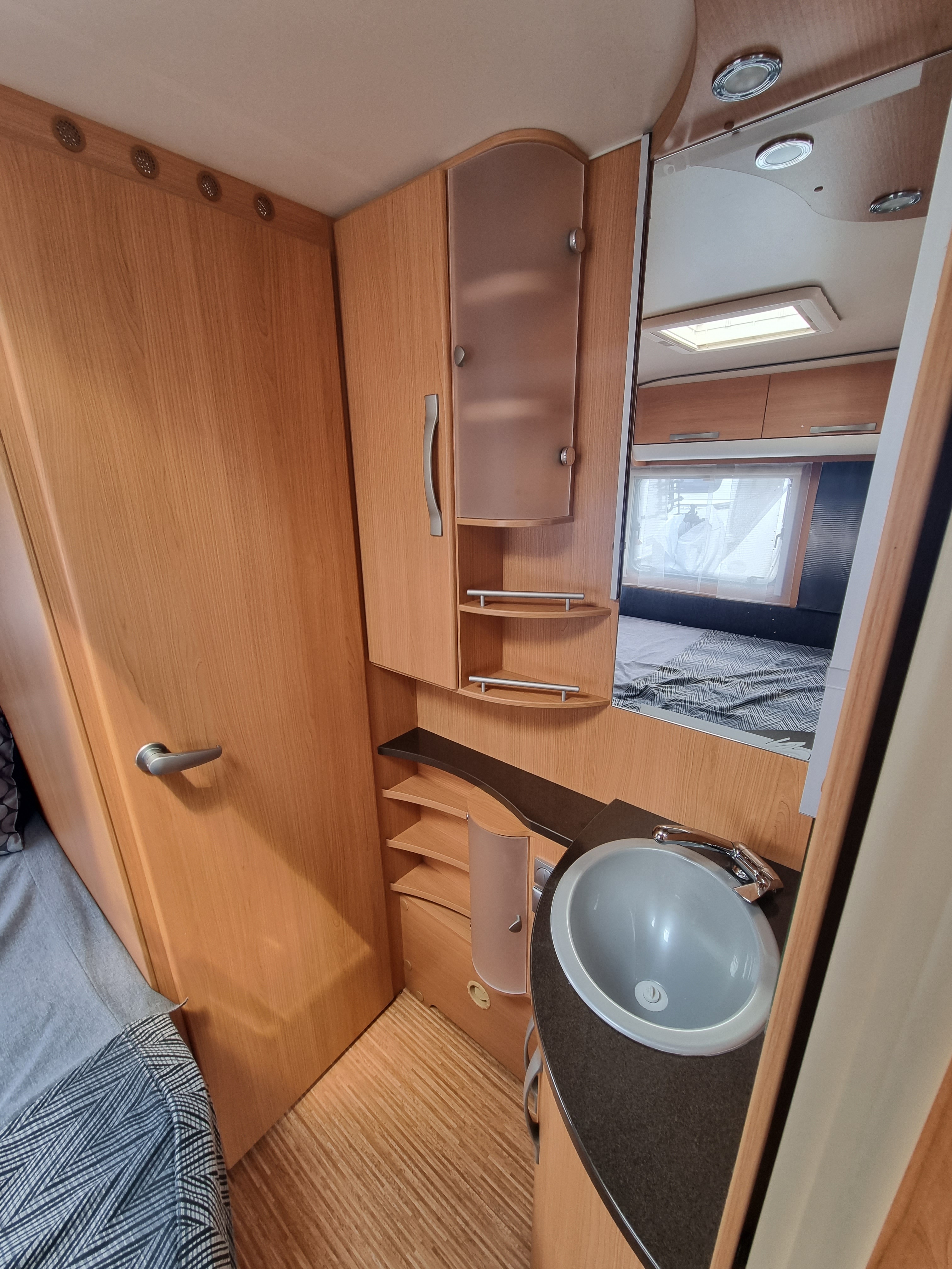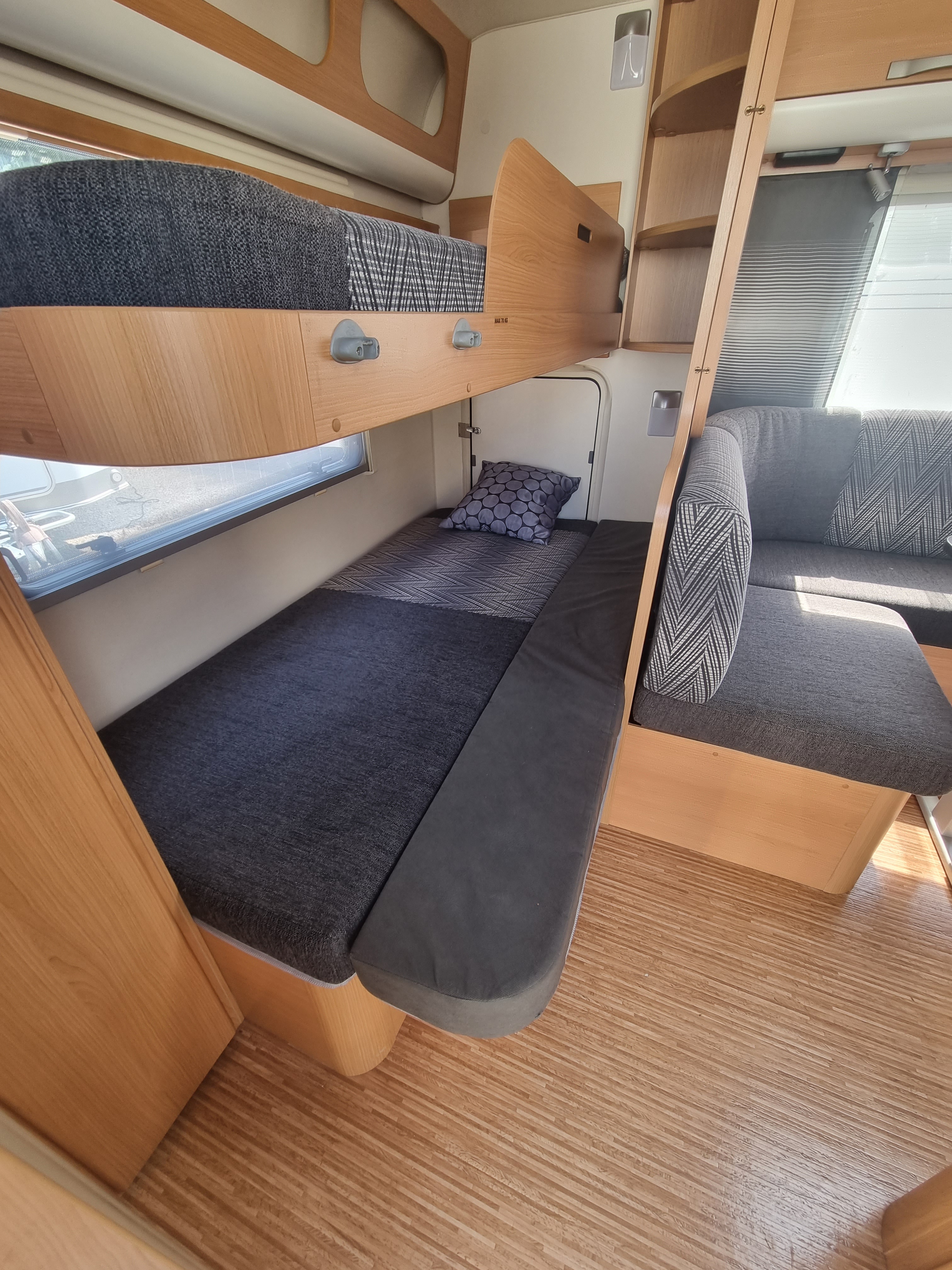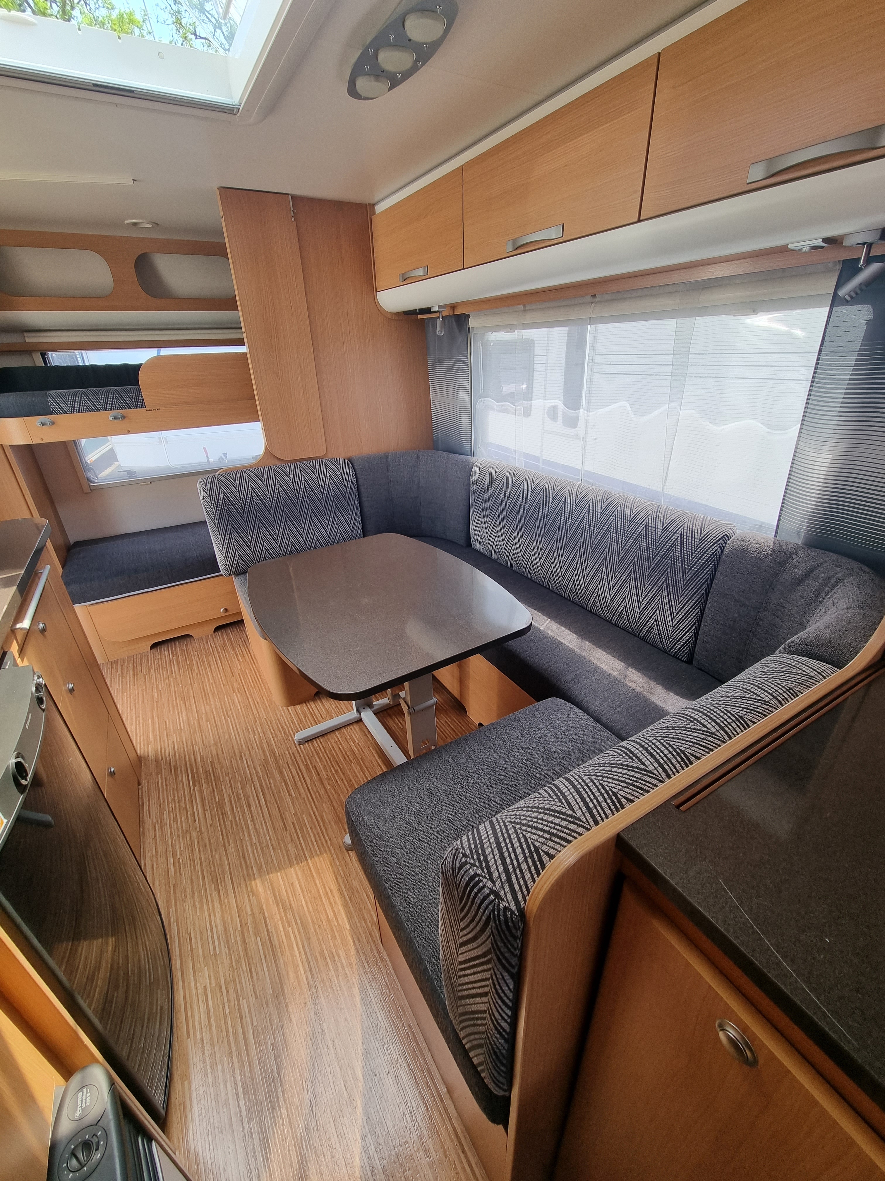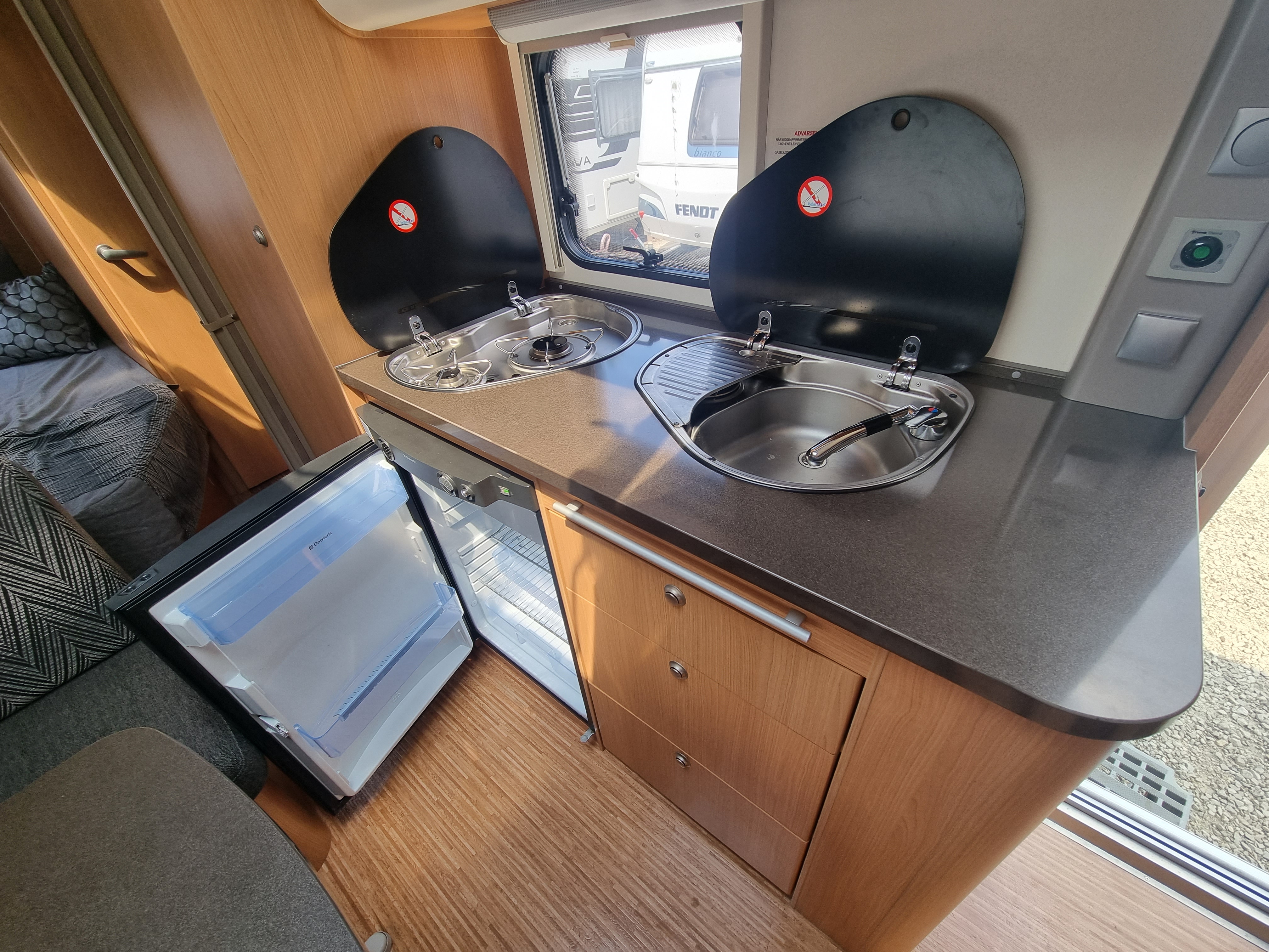 Mosogató, hűtő, tűzhely, körfűtés,mosdófülke zuhanytálcával és beépített bio-wc-vel, hideg-meleg vizrendszer, szervízajtó,kombiroló, panoráma tetőablak, külső kombi csatlakozó, stabilizátoros vonófej, caravanstore előtető, padlófűtés, mover, Truma ultraheat, 2 db-os első kerékpártartó
