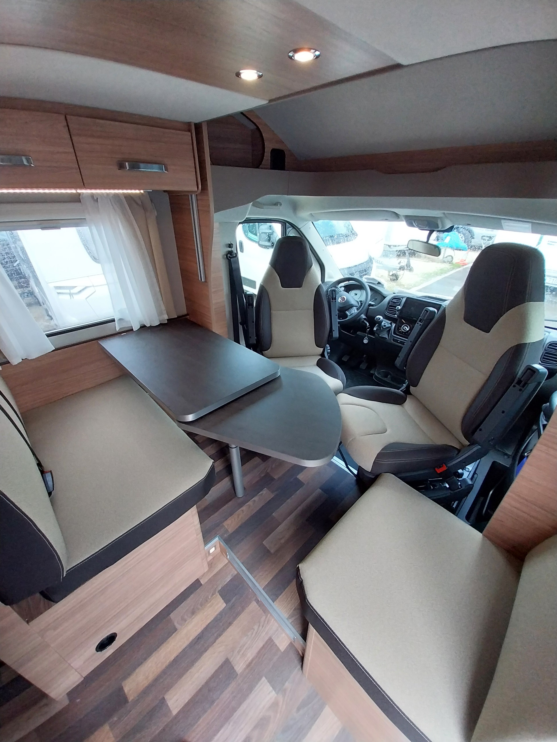Fiat 2,2 l Multijet, Euro 6 ,180 LE-s dízelmotor, manuális váltó, szállítható személyek száma: 4 fő, fekvőhelyek száma: 4 fő, manuális autós klíma, tempomat, elektromos kézifék, ABS, visszagurulás gátló, indításgátló, szervokormány, központi zár, fényszóró magasság állítható, központi fejegység (AM/FM rádió, CD lejátszó, GPS navigációs rendszer, tolatókamera), USB port, elektromosan állítható visszapillantó tükrök, elektromos ablakok, vezető- és utasoldali légzsák, forgatható vezető- és utasoldali ülés, kartámaszok, vezető fülke sötétítő, kombirolók, szúnyoghálós ajtó, panoráma tetőablak, mosogató, 133l-es hűtő, tűzhely, fűtés, beépített 12l-es Truma Combi 6 gázbojler, 100l beépített víztartály, 95l szennyvíztartály, mosdófülke beépített bio-Wc-vel és zuhanyzóval,