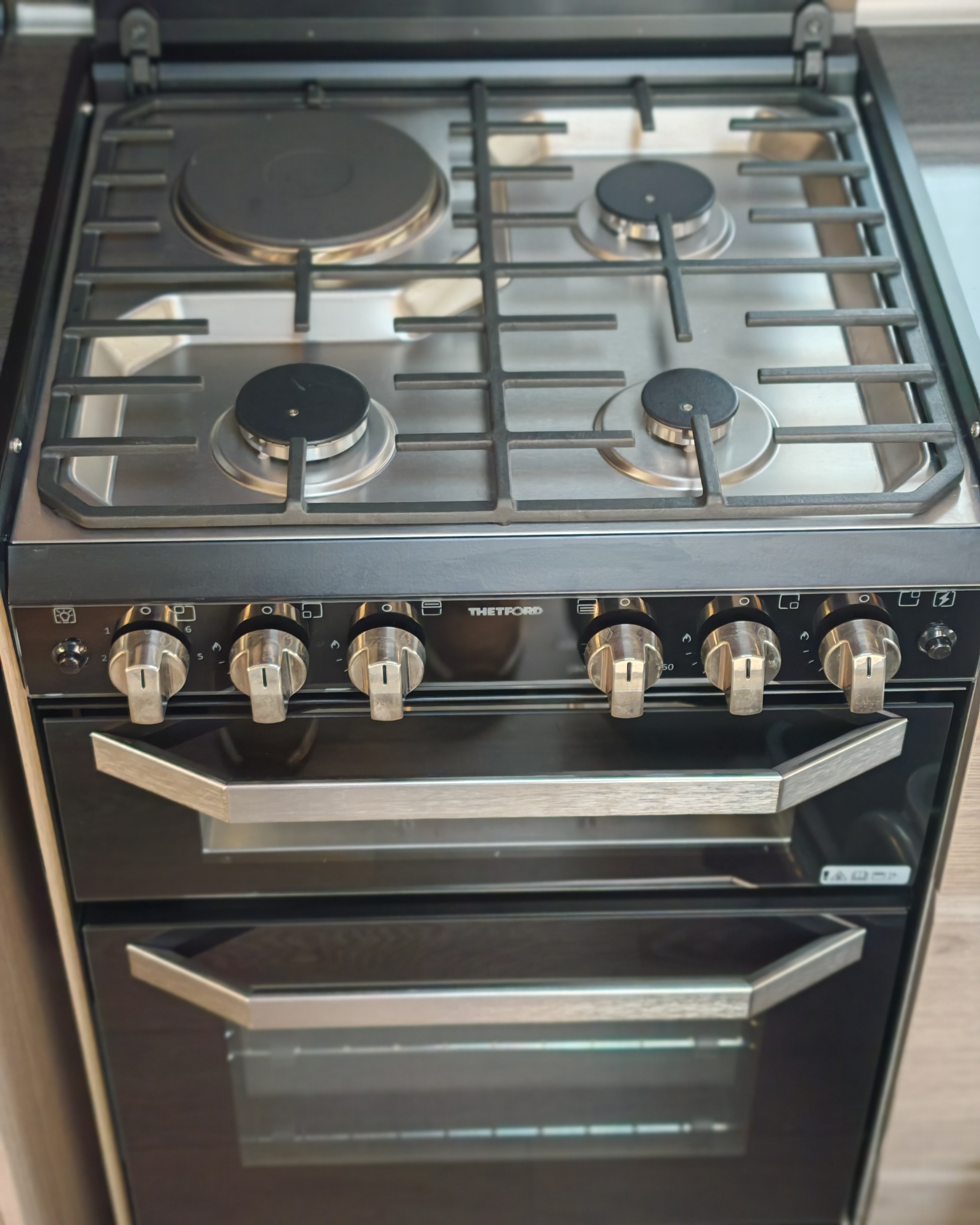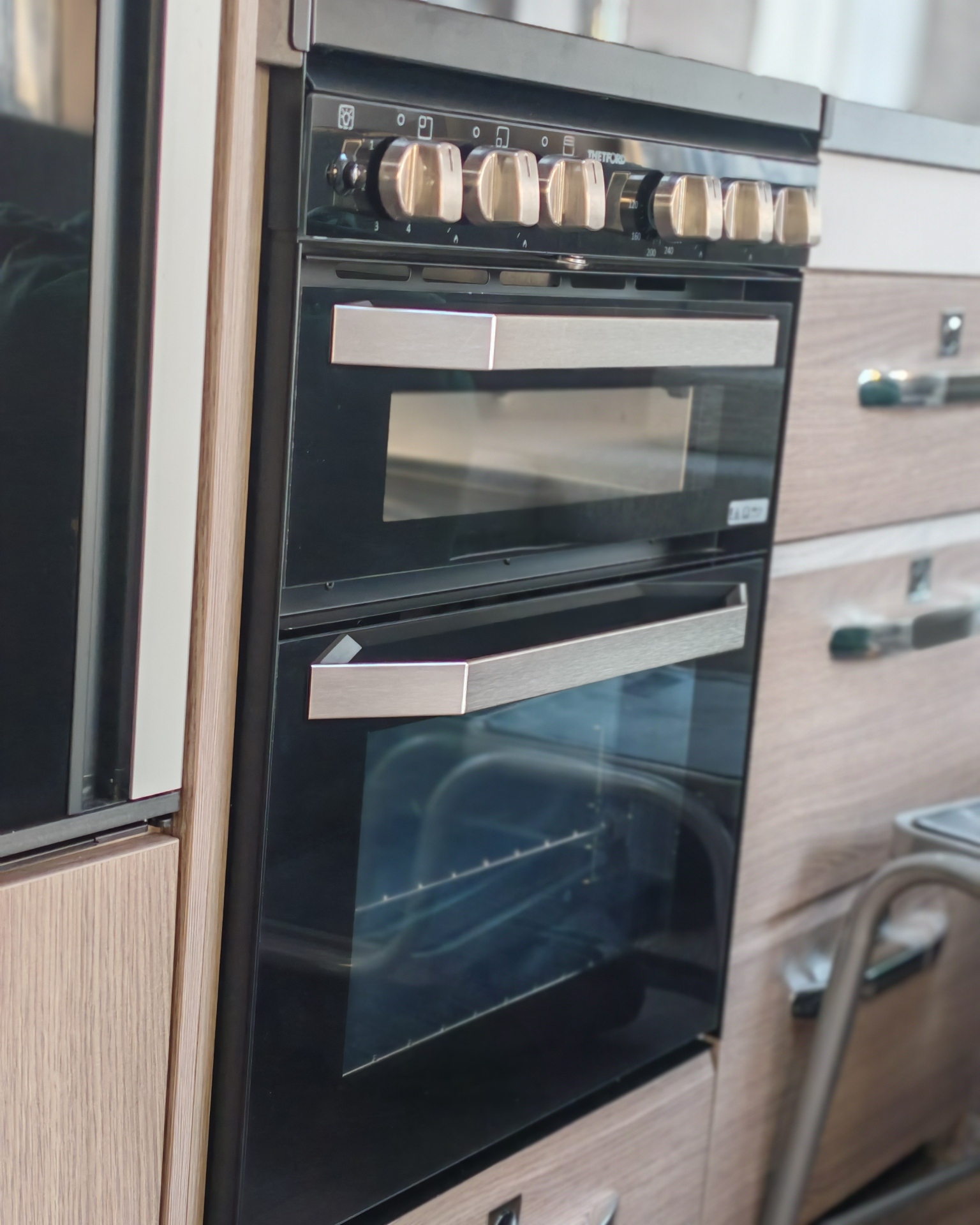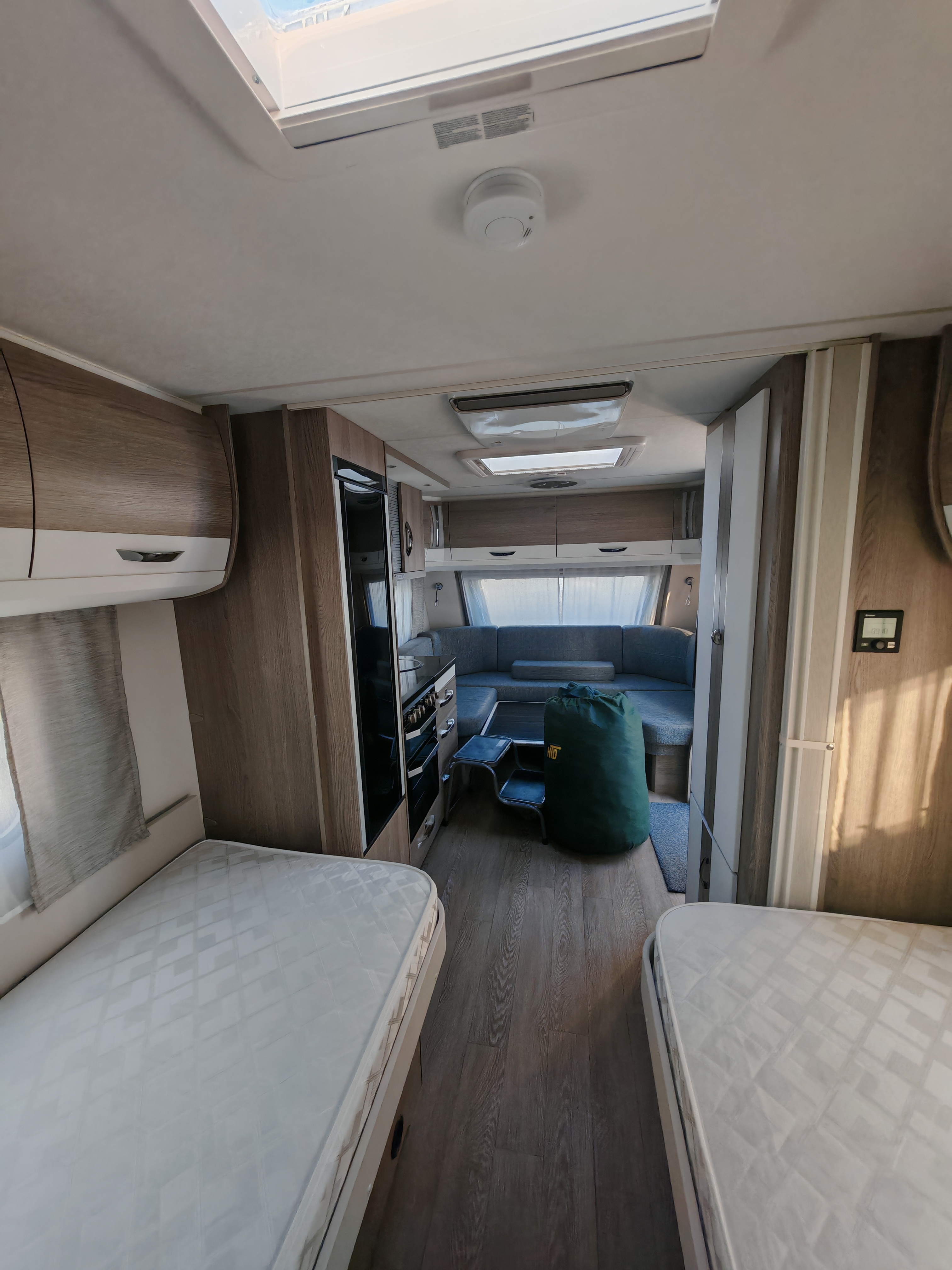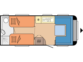 Fekvőhelyek száma: 4 fő, mosogató, toronyhűtő, 3 égőfejes tűzhely, Thetford sütő, mosdófülke beépített bio-Wc-vel és zuhanytálcával,  hideg-meleg vízrendszer, beépített víztartály, szennyvíztartály, panoráma tetőablak, kombirolók, Truma INet központ, gázriasztó, térelválasztó,  gardróbszekrény, olvasólámpa, Sinclair tetőklíma, TV, padlófűtés, Truma Combi gáz-elektromos kazán