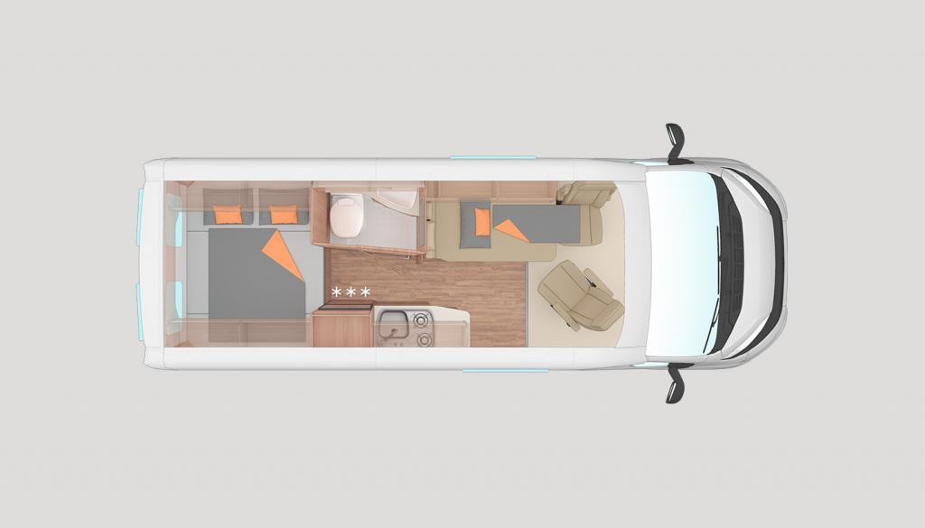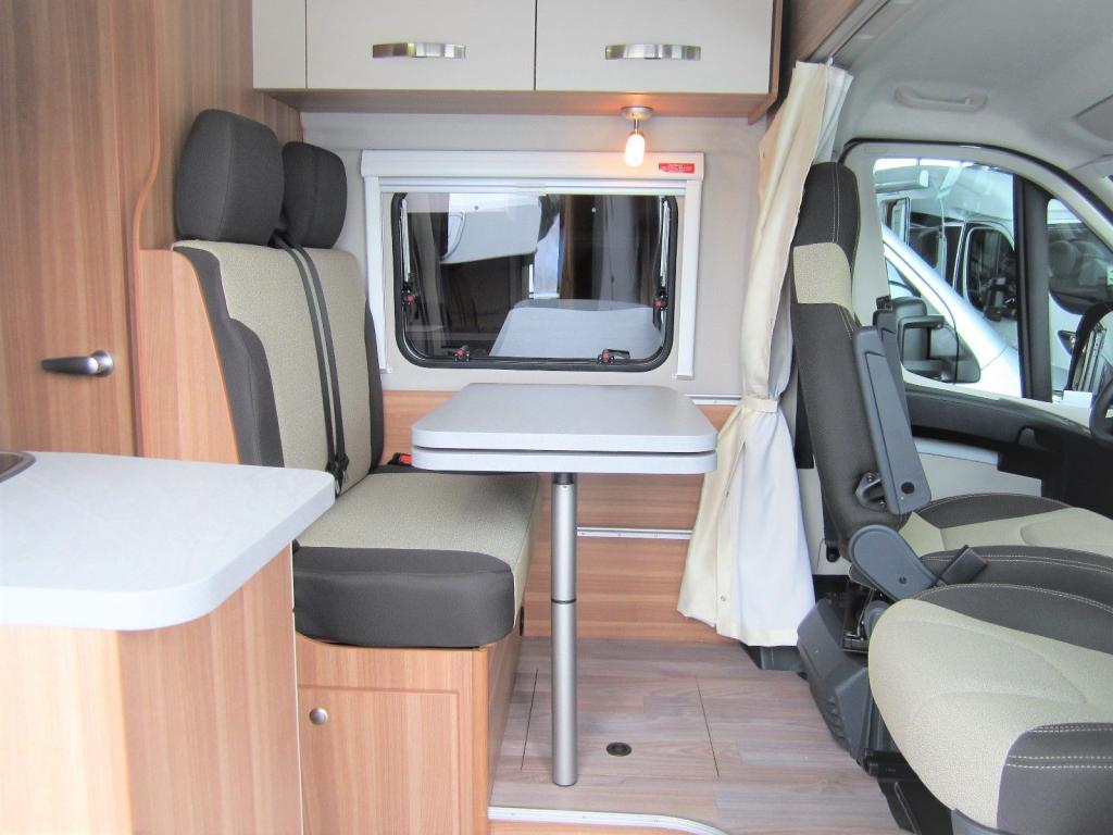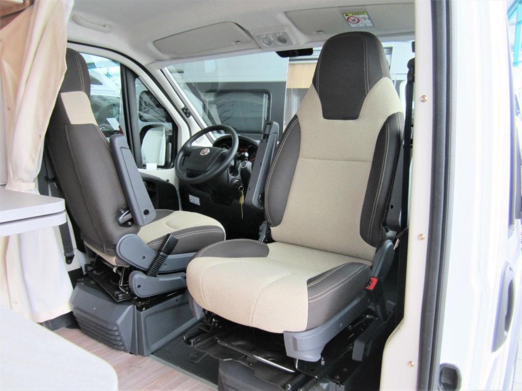 Fiat Ducato EURO 6, 2,3L 120 LE dízelmotor, szállítható személyek száma: 4 fő, vezetőoldali légzsák, ABS, ESP-visszagurulás gátló, forgatható ülések, szervokormány, hárompontos biztonsági öv, elektromos ablakok a vezetőfülkében, mosogató, 75l hűtő, tűzhely, Truma Combi 4 gázkazán, 102l beépített víztartály, 90l szennyvíztartály, mosdófülke beépített bio-Wc-vel és zuhanytálcával, tetőablak szúnyoghálóval