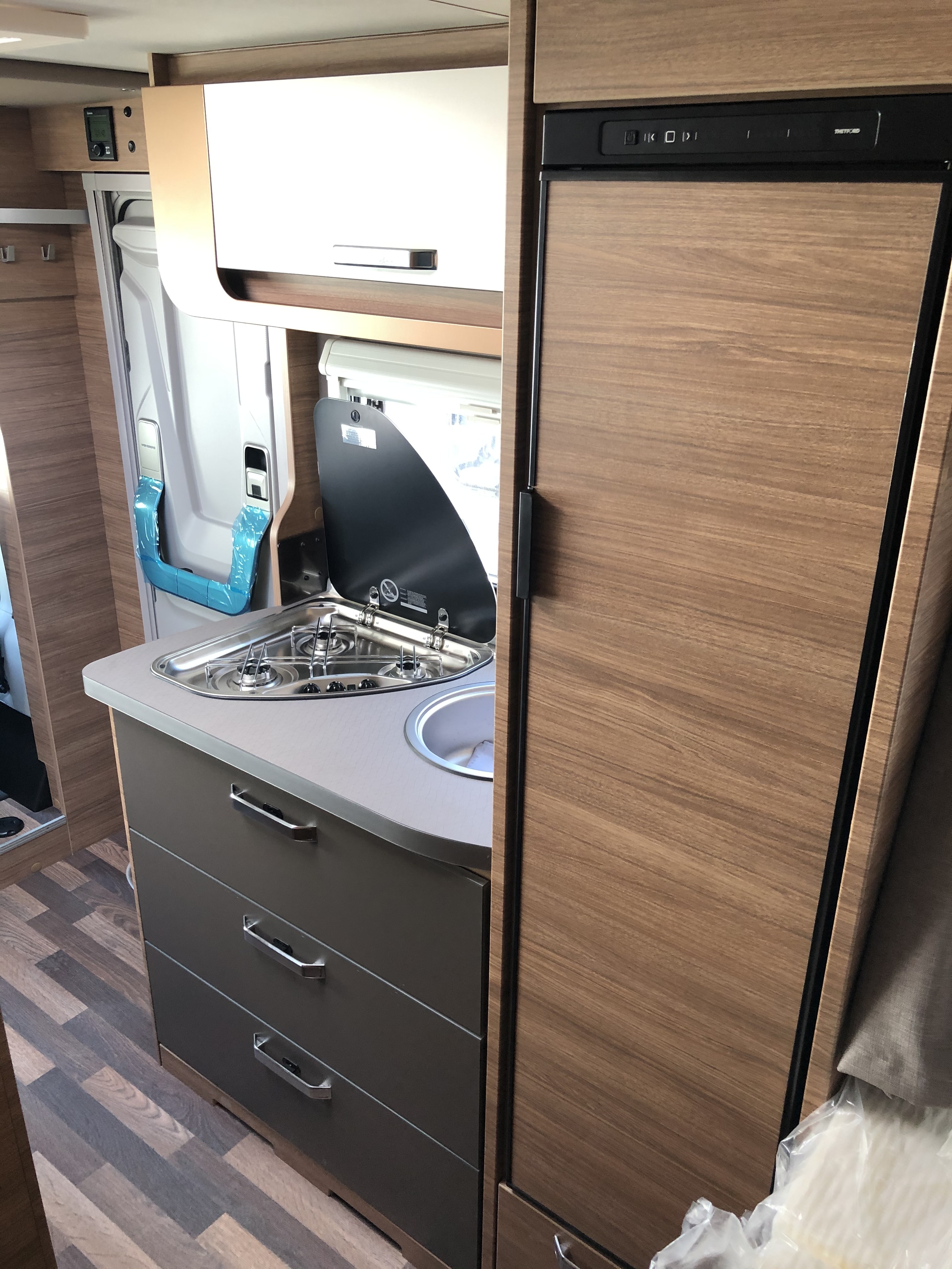 110l beépített víztartály, 95l szennyvíztartály, mosdófülke beépített bio-Wc-vel és zuhanyzóval, elektromos fellépő, fedélzeti akkumulátor, Truma iNet-System központi vezérlő egység, ledes dekorvilágítás, kiforgatható asztal bővítés, akasztós szekrény, hátsó tárolórész , Thule omnistor, TV konzol - 24"-os LED TV Oyster Premium Twin satelit antennával, tolatókamera, guminyomás érzékelő szenzorok, BWT vízszűrő rendszer