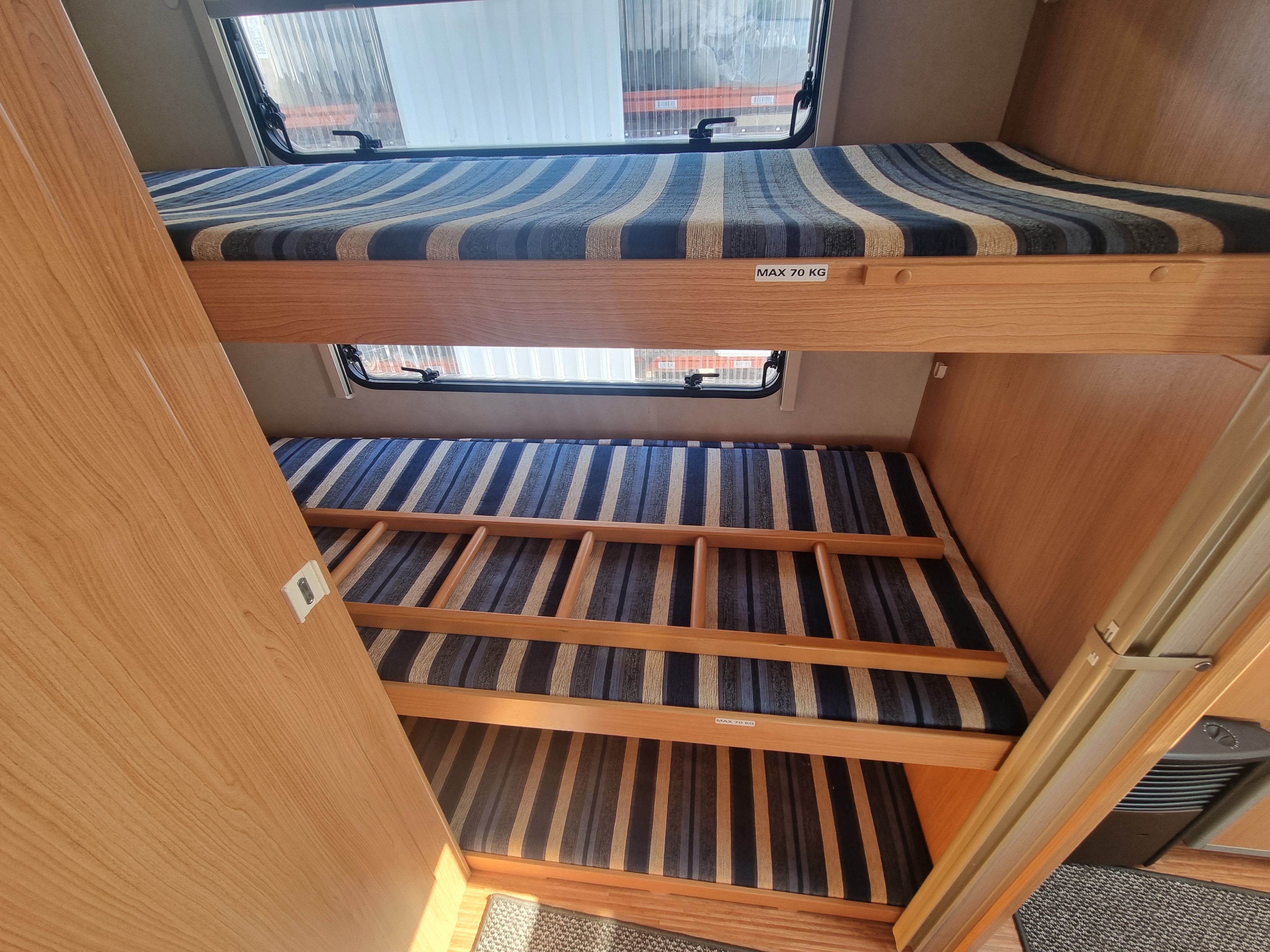 Stabilizátoros vonófej, Al-KO ATC, mosogató,hűtő, tűzhely, Truma gázfűtés, mosdó és zuhanyfülke hideg-meleg vízrendszer, villanybojler,omnistor és elősátor, tetőklíma,első 2 db-os és hátsó 3 db-os kerékpártartó, Tv , antenna,