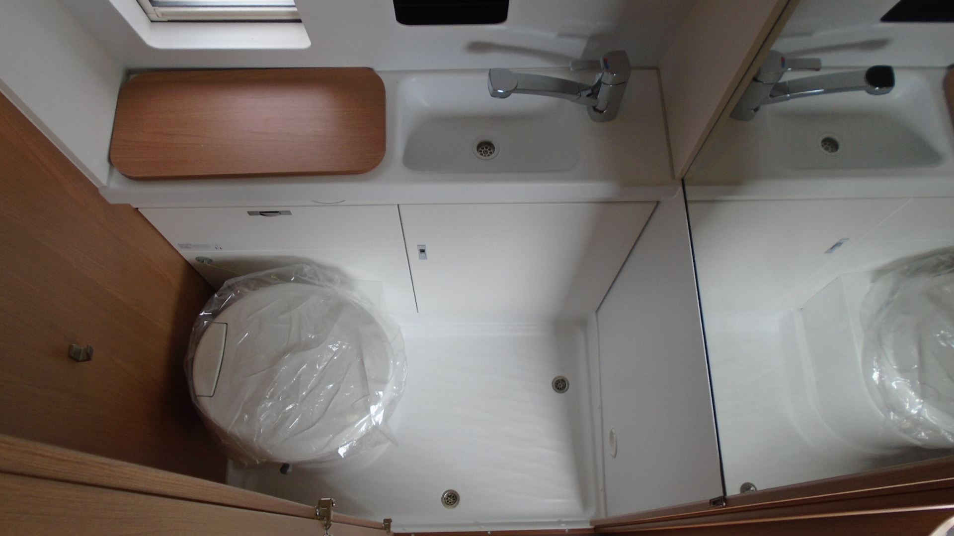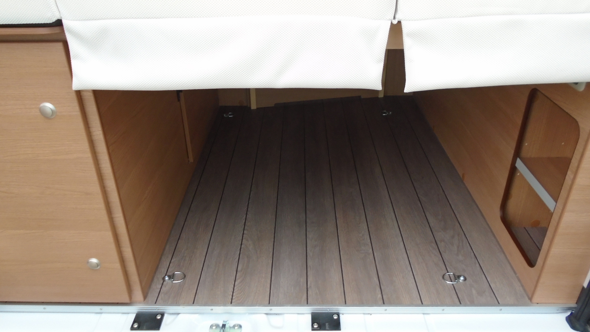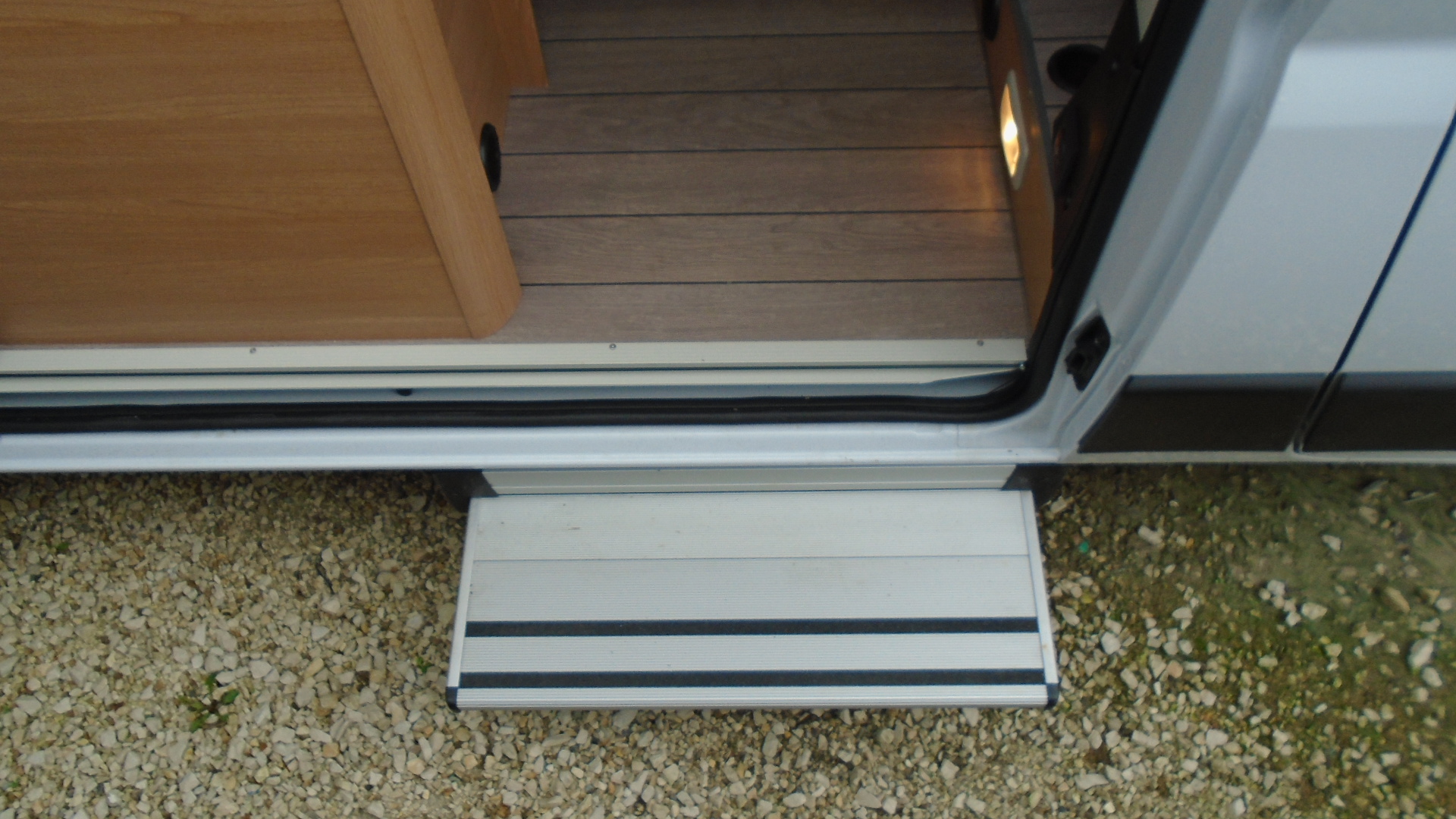 , mosdófülke beépített bio-Wc-vel és zuhanytálcával, tetőablak szúnyoghálóval, 95 Ah fedélzeti akkumulátor, fürdőszoba oldalablak, Thule 2 db-os hátsó kerékpártartó, Truma tetőklíma, Thule Omnistor., szúnyoghálós ajtó