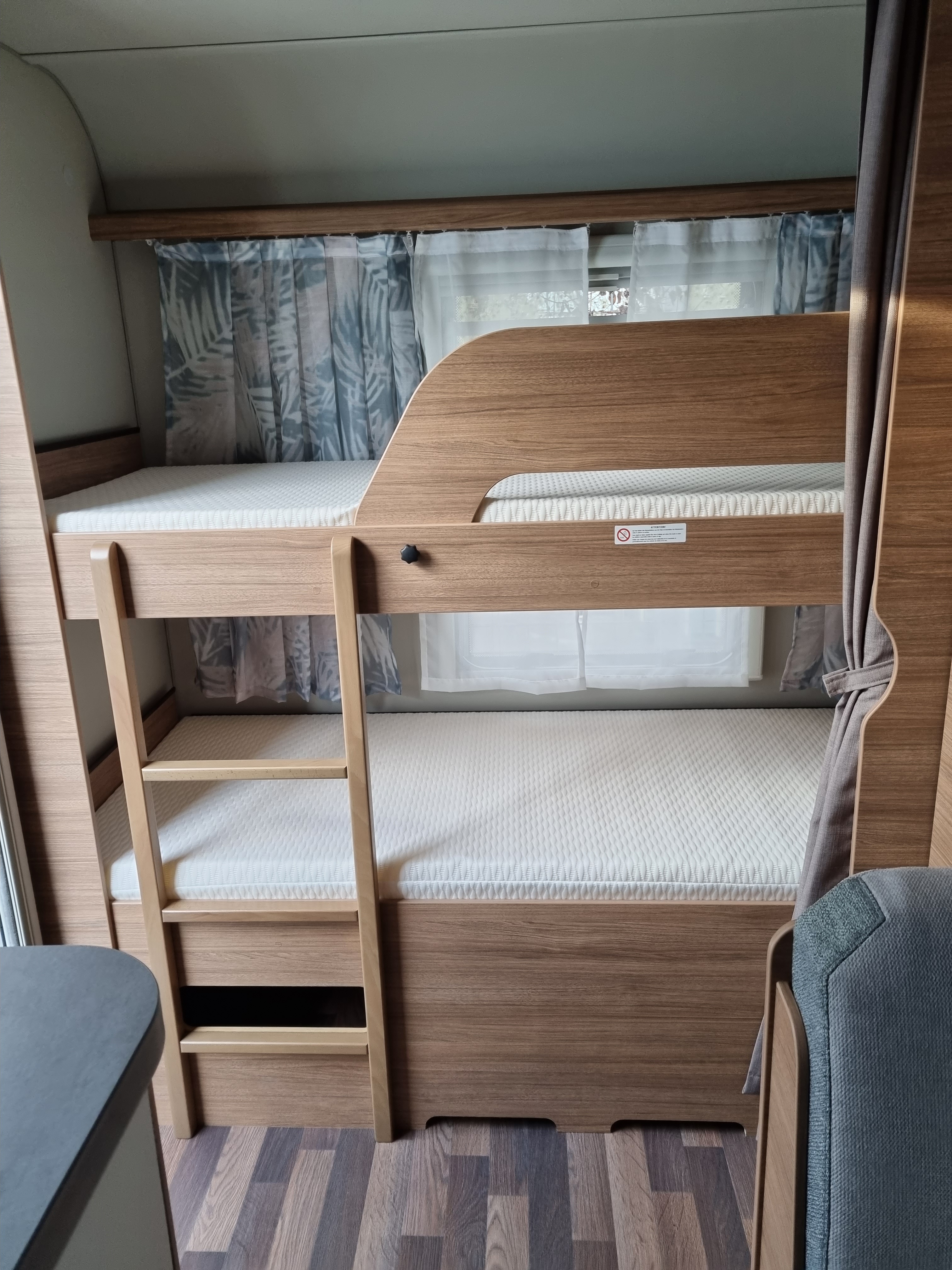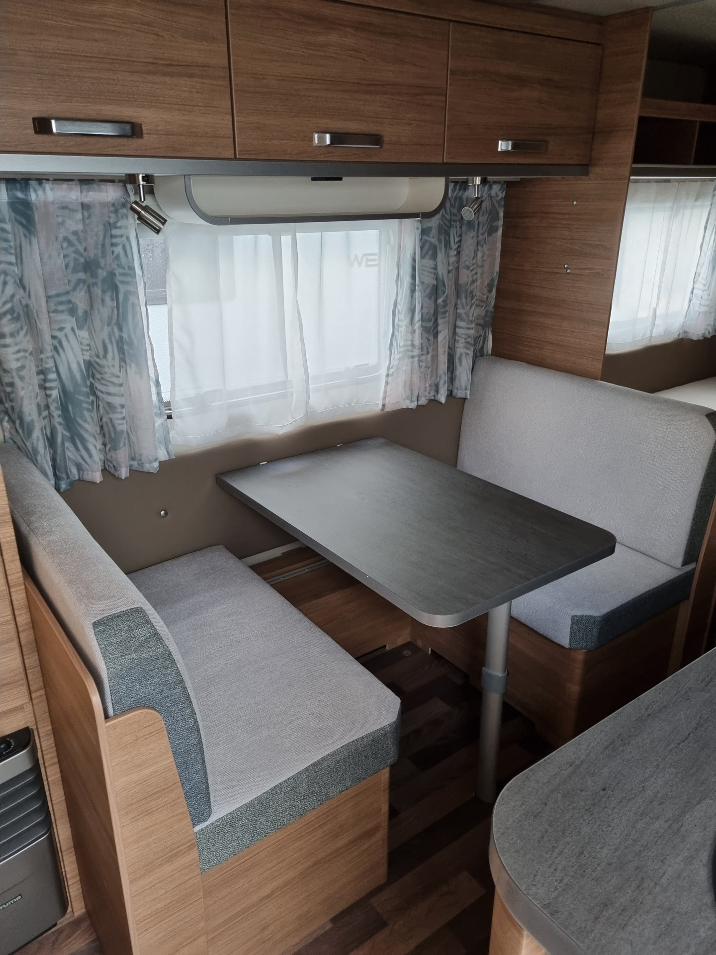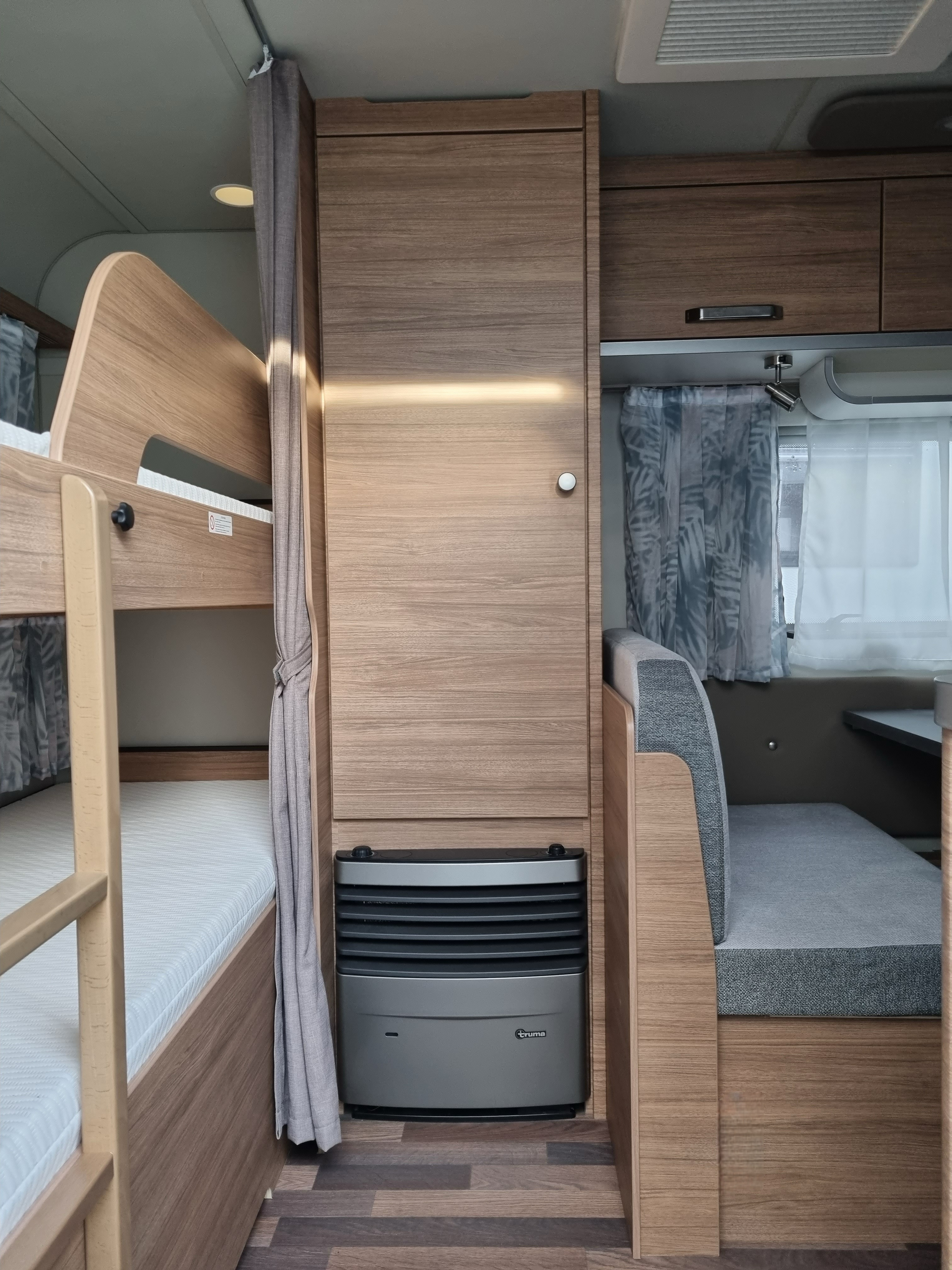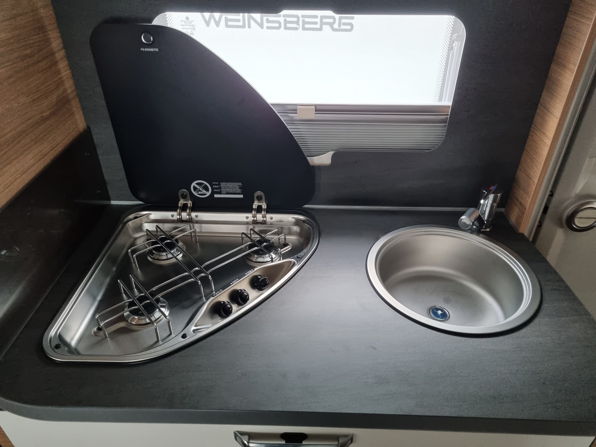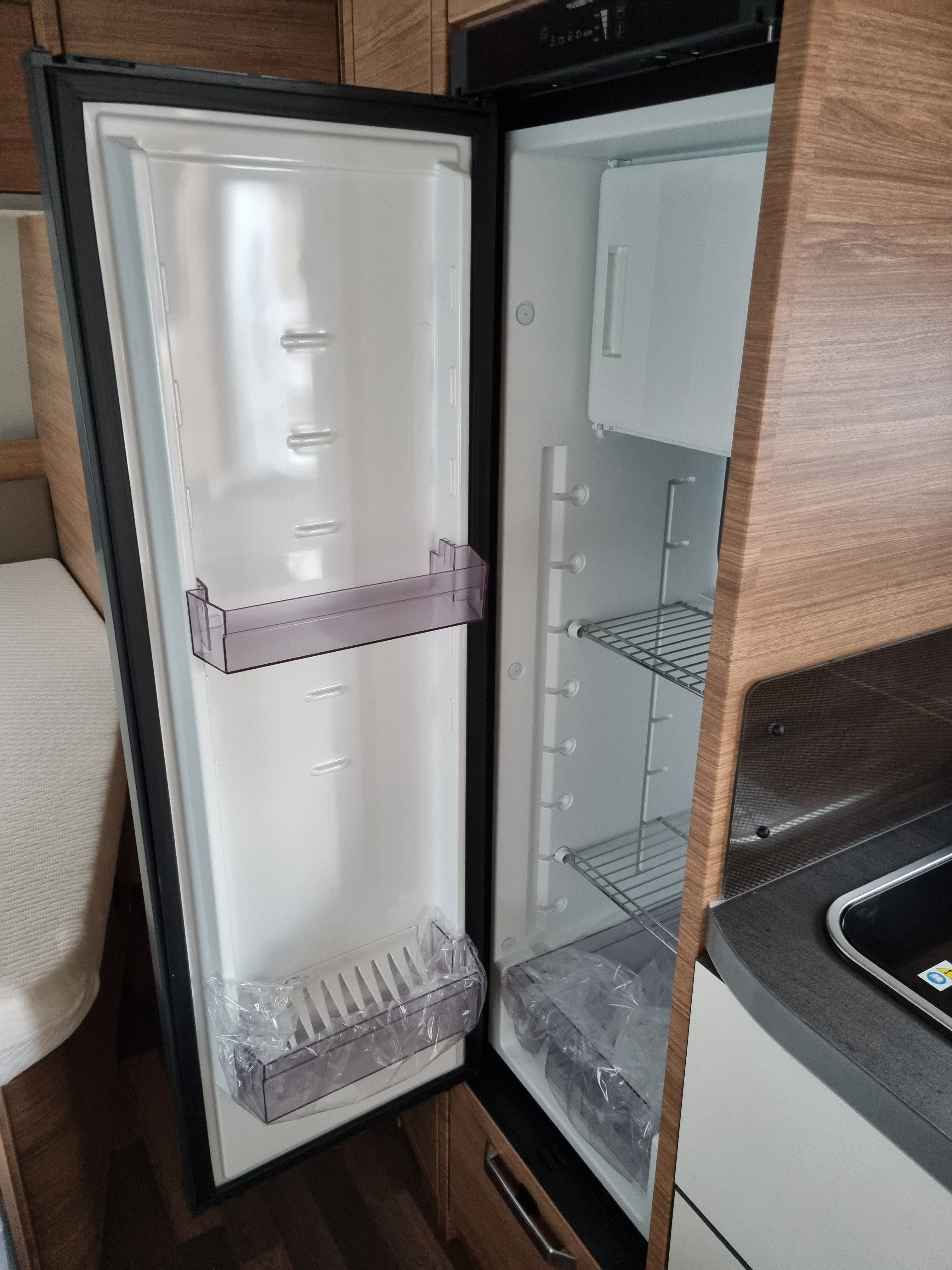 Mosogató,133L-es Thetford hűtő, tűzhely, 12V-os körfűtés, beépített mosdó, zuhanyfülke beépített bio Wc-vel, kombirolók, szúnyoghálós ajtó, térelválasztó függöny, hideg-meleg vízrendszer, beépített víztartály, 25l-es mobil szennyvíztartály, panoráma tetőablak, stabilizátoros vonófej.