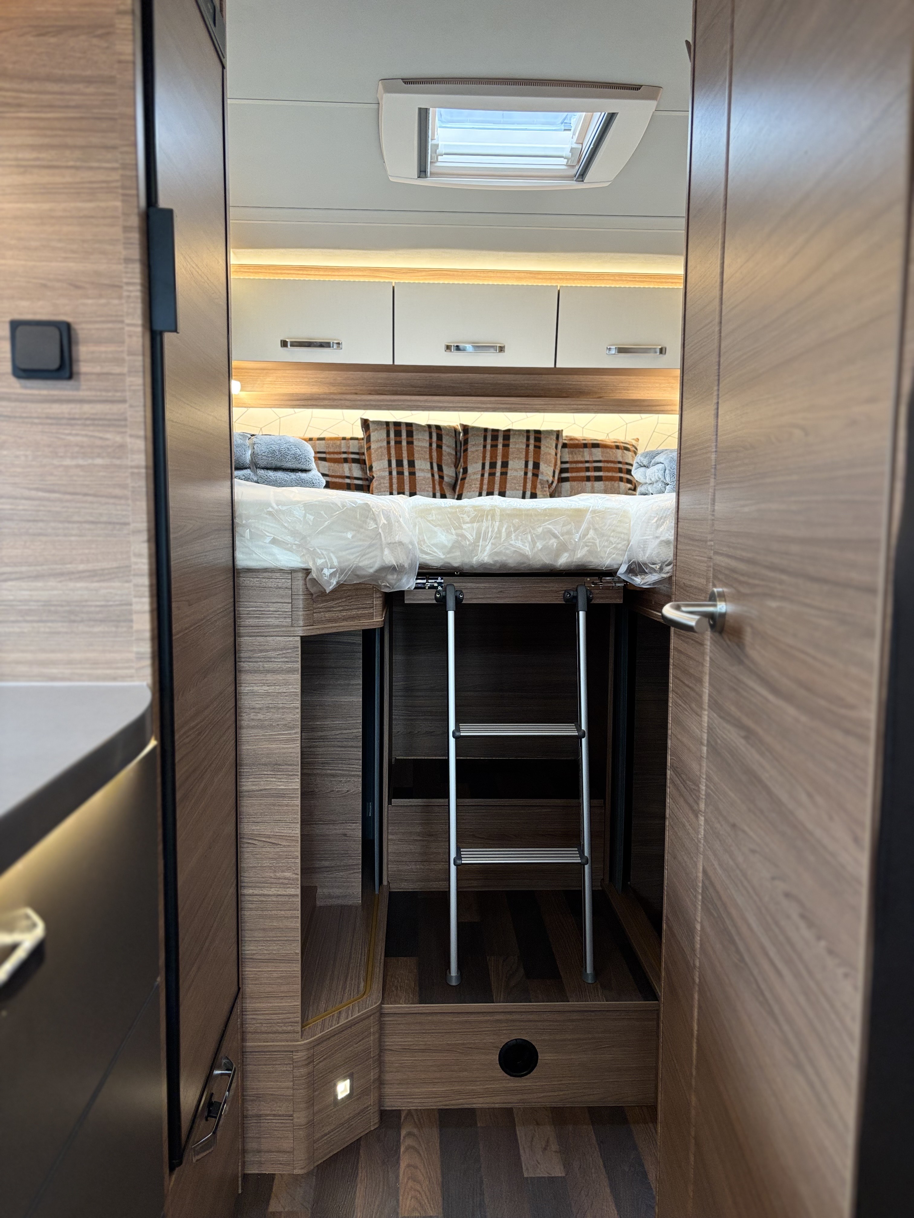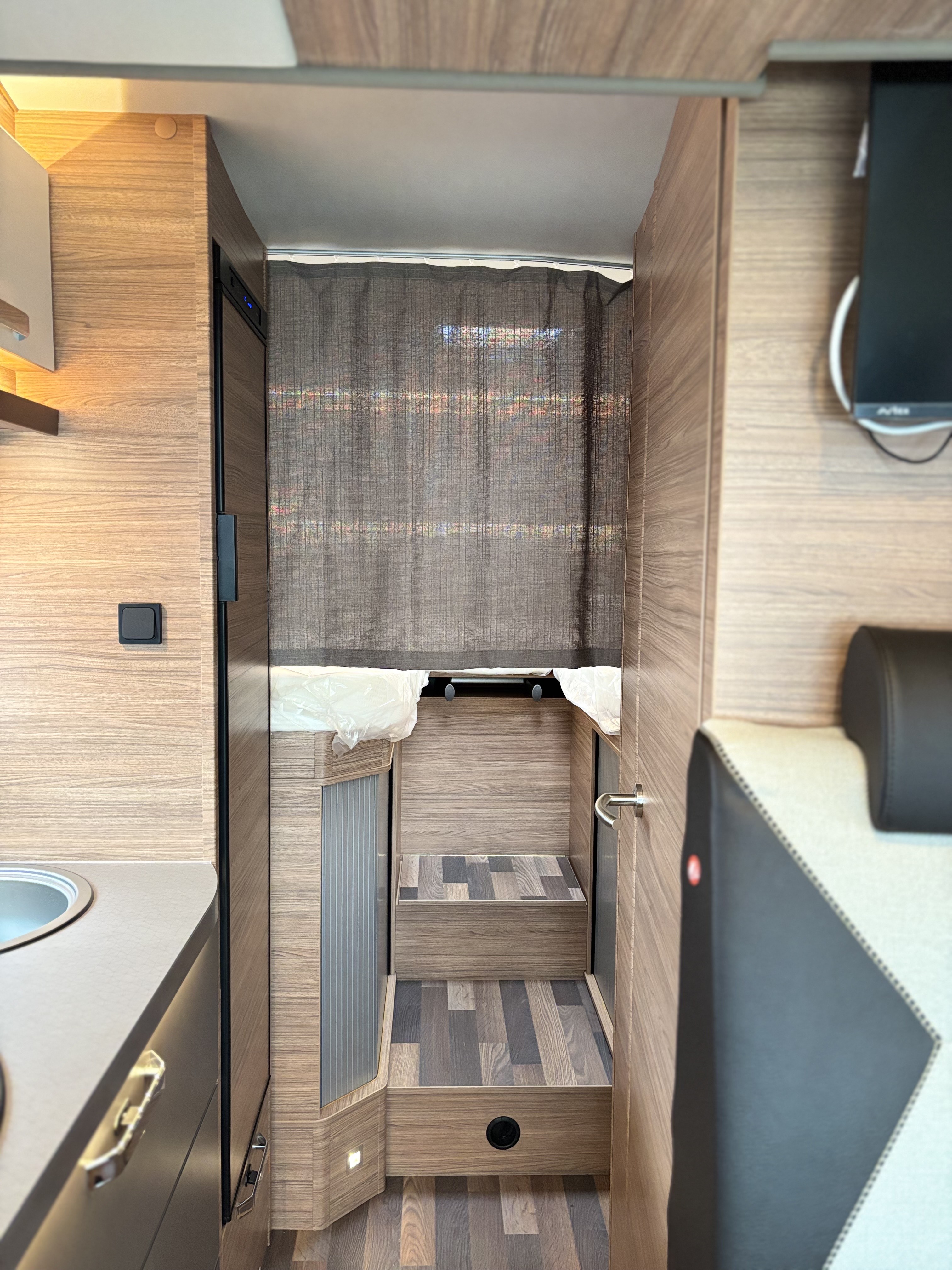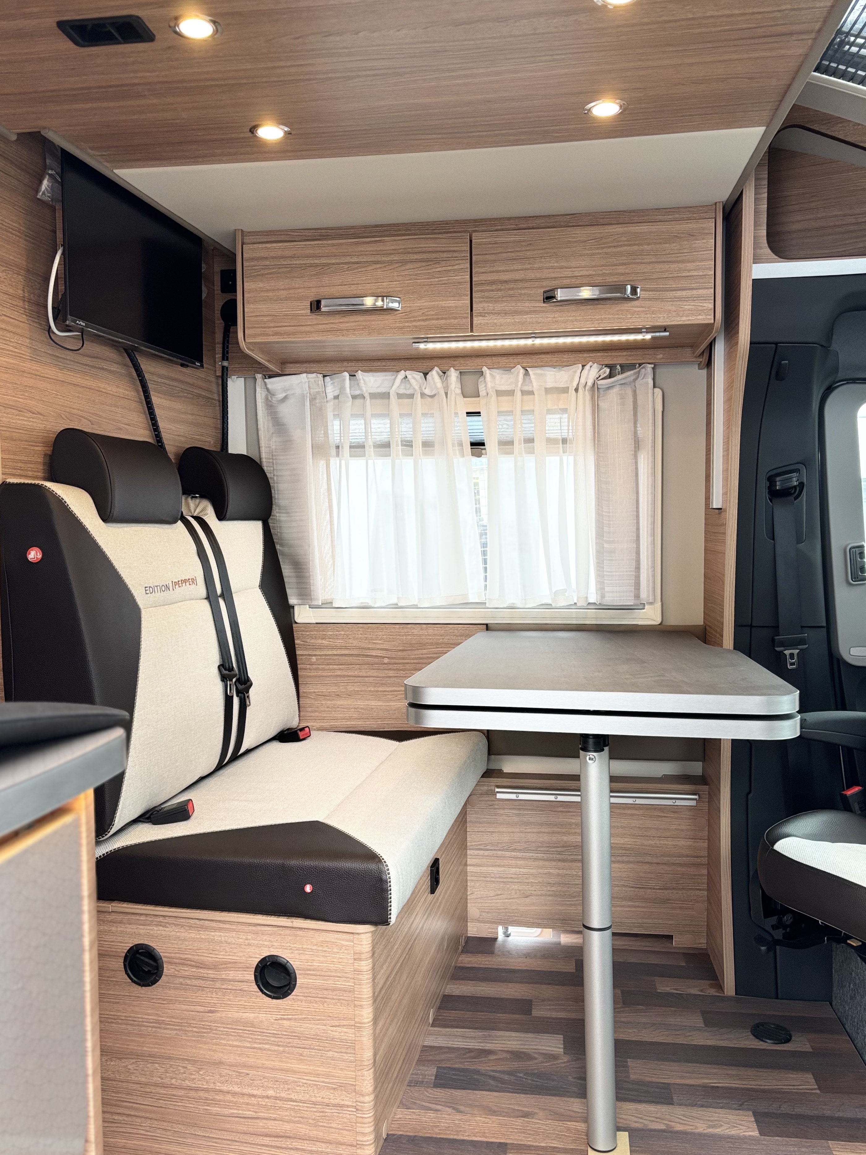 Mercedes Sprinter 3500 kg; (125 kW / 170 LE) Start&Stop rendszerrel; elsőkerék-hajtassál, Euro 6e, 9 fokozatú automata sebességváltó, 65 literes üzemanyagtartály, fekvőhelyek száma: 4 fő, szállítható személyek száma: 4 fő, megnövelt teherbírású első tengely, szélesített hátsó tengely, autó színére festett lökhárító, félautomata vezetőfülkei klíma, vezető és utasoldali légzsák, MERCEDES vezetőülések, vezetőülések magasságállítással, forgatható vezetőülés, állítható utasoldali ülés, bőrborítású kormánykerék és sebességváltókar, hőszigetelt szélvédő, első és oldalsó ablak sötétítéssel, ESP, ABS, elektromos indításgátló, elektromos szervokormány, adaptív féklámpa, fényszóró asszisztens, oldalszél-asszisztens, álmosságérzékelő rendszer, aktív sávtartó asszisztens, edzett üveges szélvédővel, esőérzékelő – automatikus ablaktörlés, visszagurulás-gátló, vészfékasszisztens, abroncsnyomás-ellenőrző rendszer, Truma iNet-System központi vezérlő egység, MBUX multimédiás rendszer 26 cm-es érintőképernyővel, DAB+ digitális rádió, színes kijelzős műszeregység, tolatókamera, Apple CarPlay és Android Auto kompatibilitás, navigációs lehetőségek a telefonról