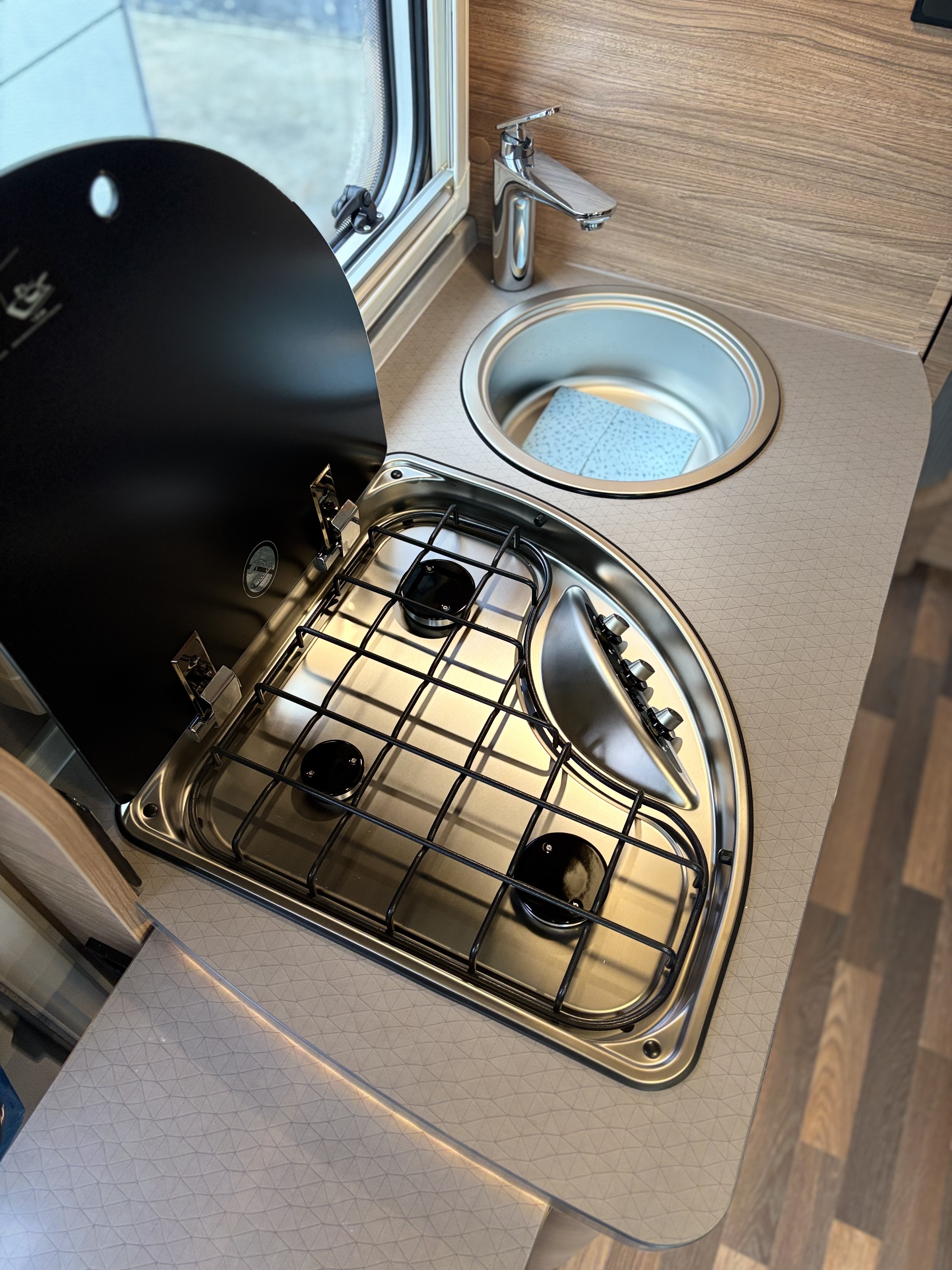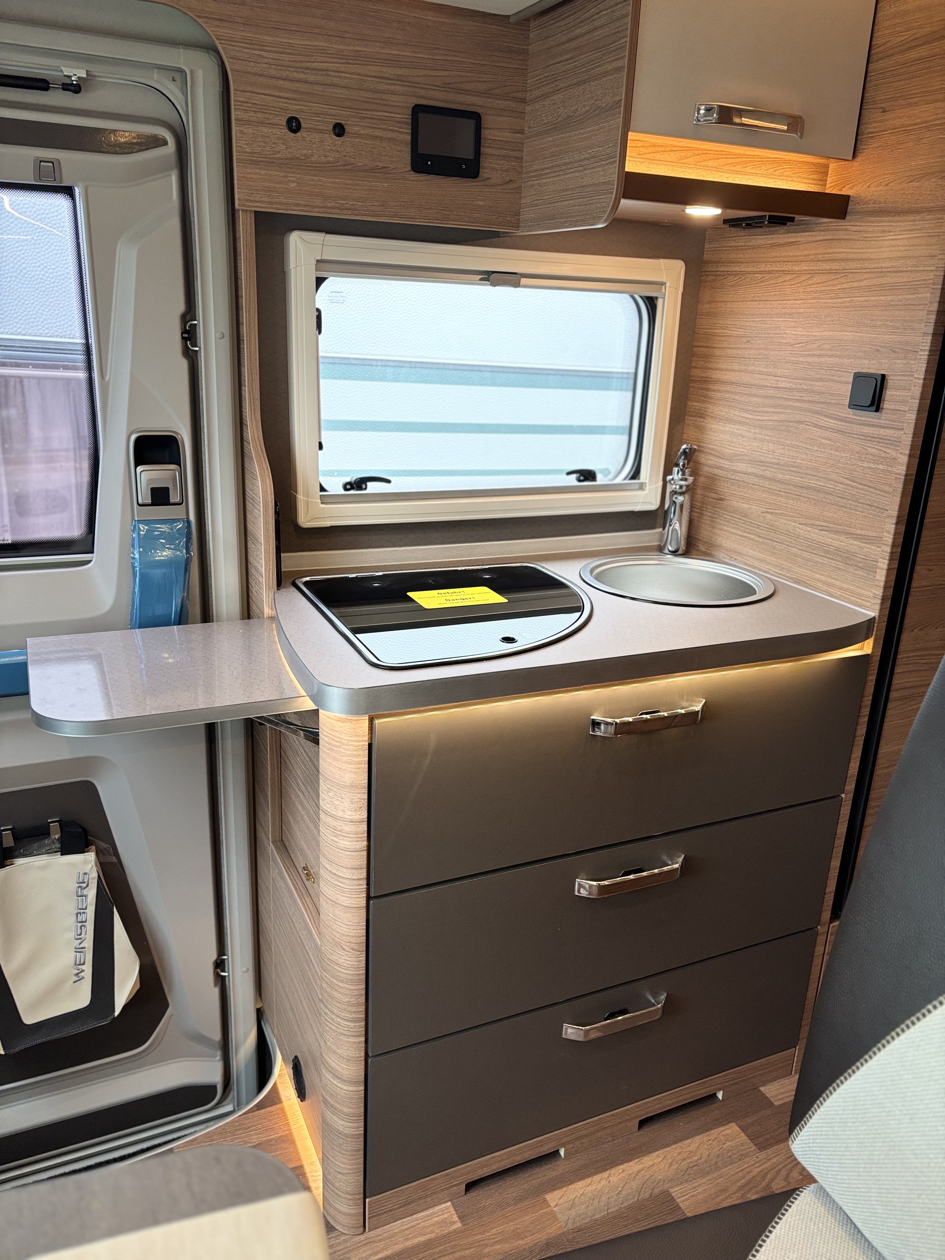 Weinsberg prémium ajtó (öbbpontos zár, rejtett zsanérrendszer, nyitáskorlátozás / gázrugós ajtórögzítő, extra ablak harmonika sötétítéssel, integrált esernyőtartó, többfunkciós zseb), Heki (40 x70-es) tetőablak, mosogató, 3 égőfejes tűzhely, 142 L-es hűtő, konyhapult hosszabbítás, mosdófülke beépített bio-Wc-vel és zuhanyzóval, 65L-es szennyvíztartály, 95L-es tiszta víztartály, szúnyoghálós ajtó, gardróbszekrény, kombirolók, EvoPore HRC matrac, TV készülék, 40 cm x 40 cm-es panoráma tetőablak hátul, előtető világítás mozgásérzékelővel, Truma Combi 6 fűtés, LED hangulatvilágítás, olvasólámpa