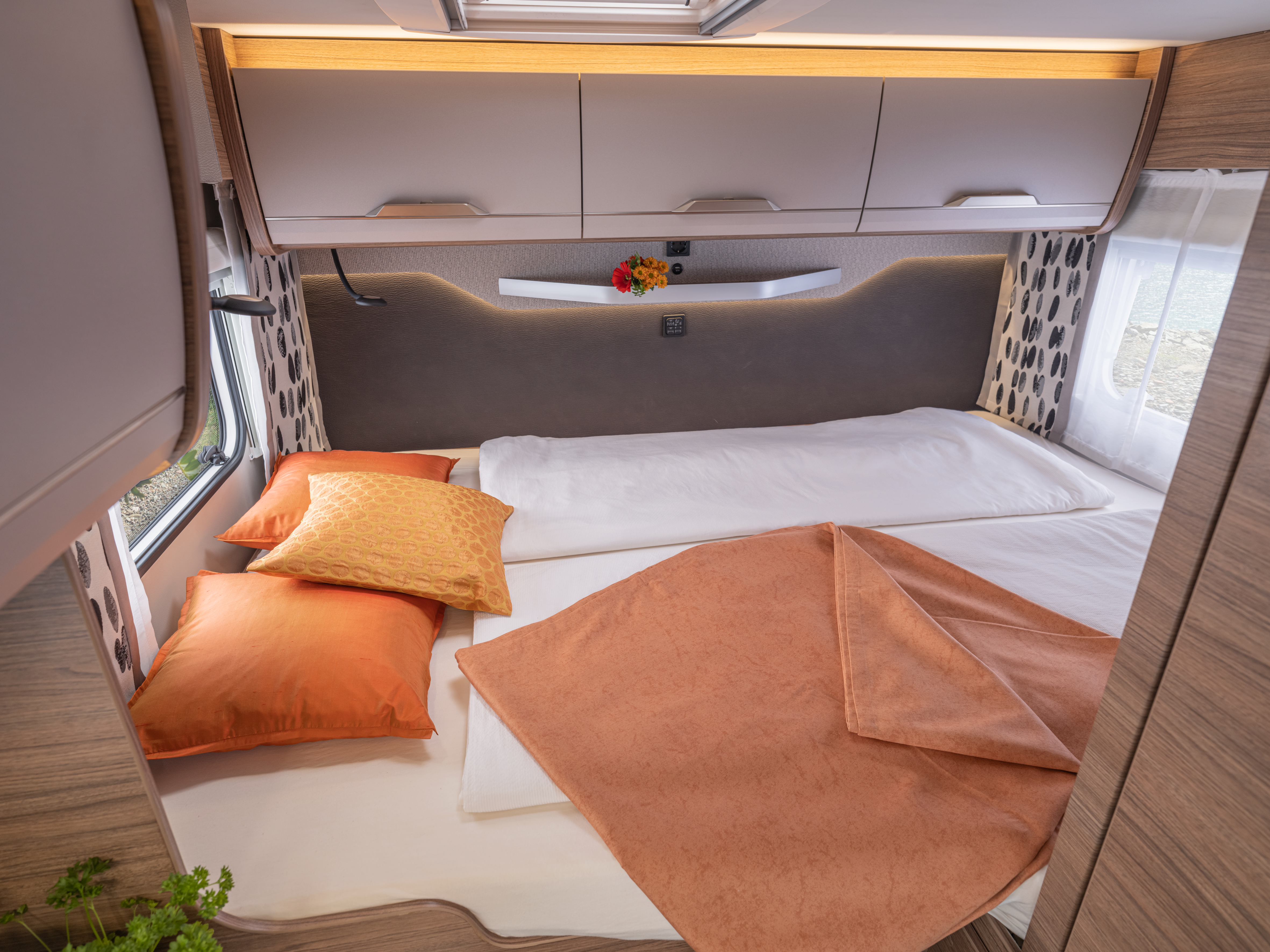 fedélzeti akkumulátor, Truma iNet-System központi vezérlő egység, ledes dekorvilágítás,akasztós szekrény, hátsó nagy garázs,  sötétítő a szélvédőn és első ablakokon, távolságtartó asszisztencia, Tető klíma, vonóhorogra szerelhető kerékpártartó, satelit antenna Tv-vel,