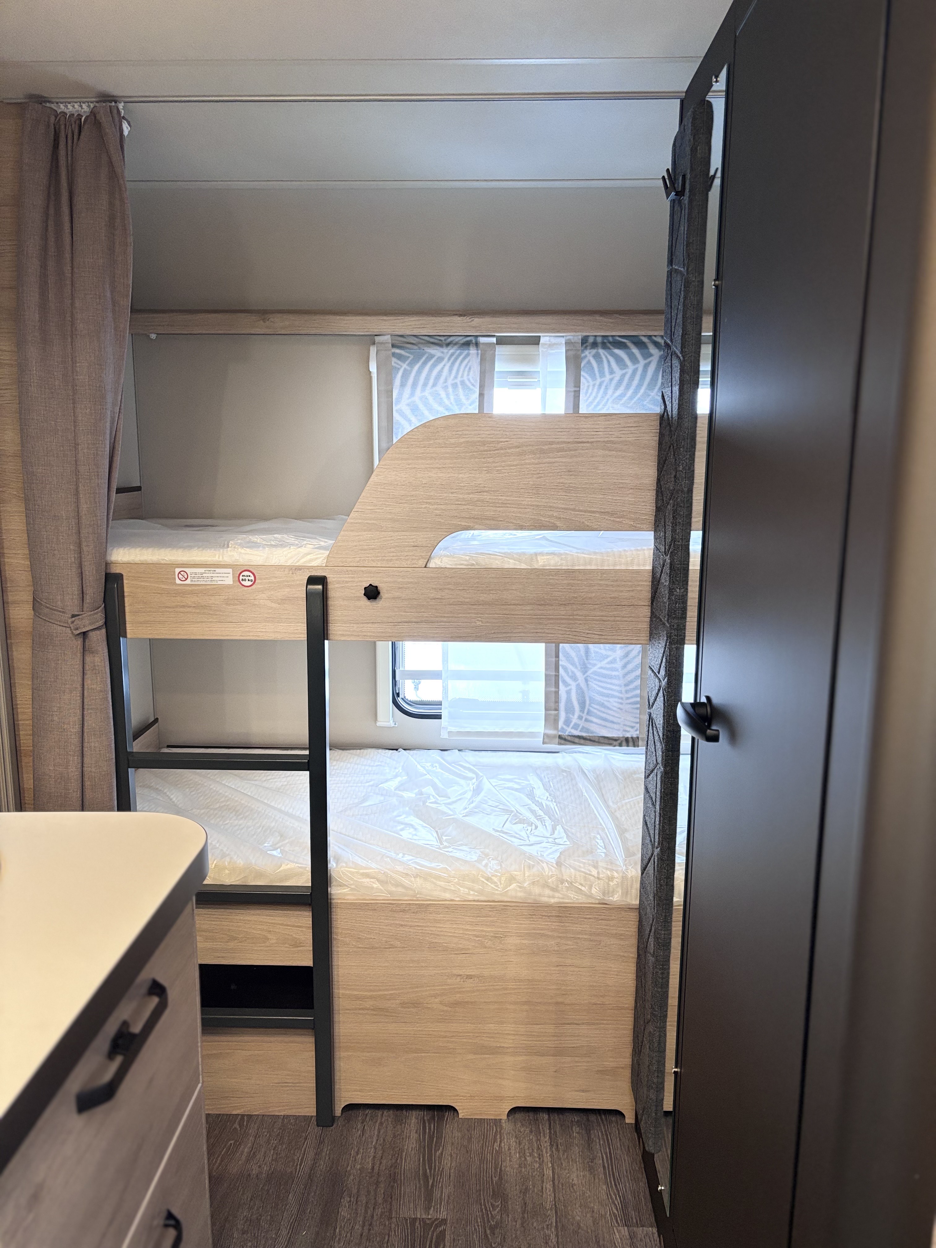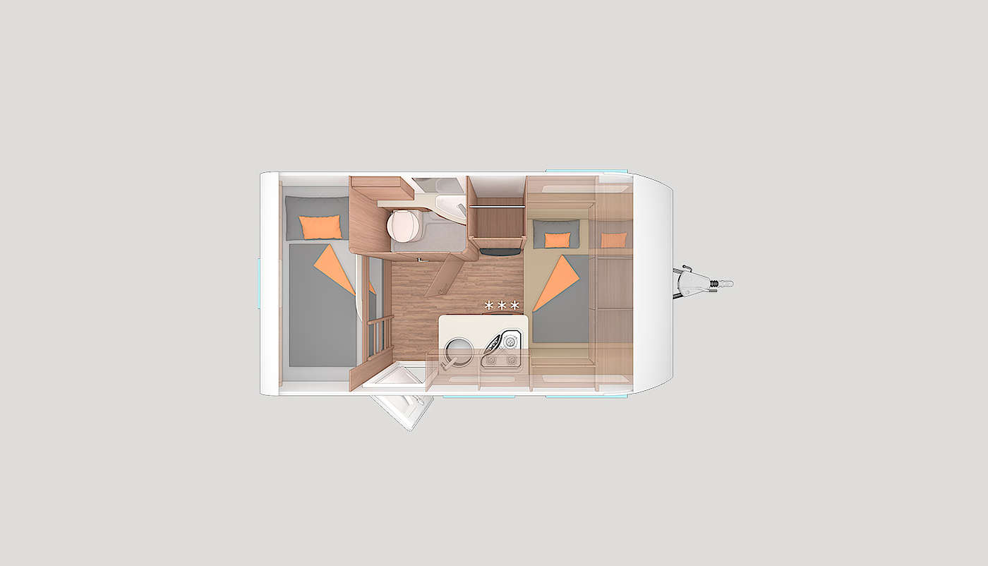Mosogató, 98 L-es Dometic hűtő, 3 égőfejes tűzhely, 12V-os körfűtés, beépített mosdófülke zuhanytálcával és beépített bio-Wc-vel, kombirolók, szúnyoghálós ajtó, hideg-meleg vízrendszer, 45 l-es beépített tisztavíztartály, 25l-es mobil szennyvíztartály, panoráma tetőablak, EvoPore HRC matrac, olvasólámpa,