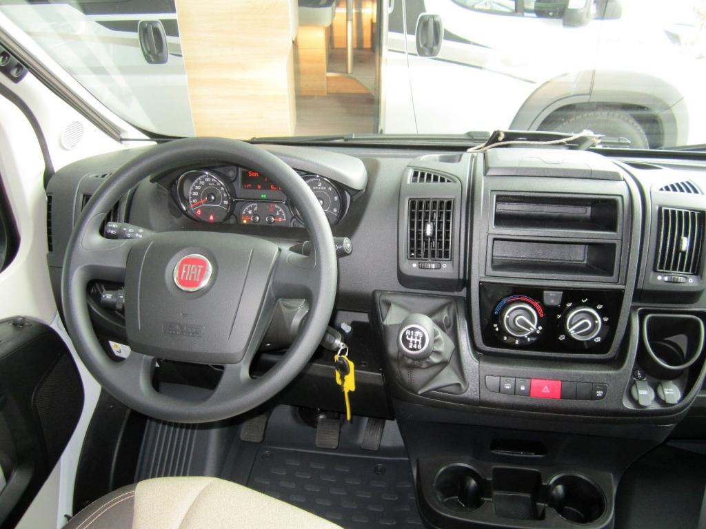Fiat Ducato EURO 6, 2,3L 120 LE dízelmotor, szállítható személyek száma: 4 fő, vezetőoldali légzsák, ABS, ESP-visszagurulás gátló, forgatható ülések, szervokormány, hárompontos biztonsági öv, elektromos ablakok a vezetőfülkében, mosogató, 75l hűtő, tűzhely, Truma Combi 4 gázkazán, 102l beépített víztartály, 90l szennyvíztartály, mosdófülke beépített bio-Wc-vel és zuhanytálcával, tetőablak szúnyoghálóval