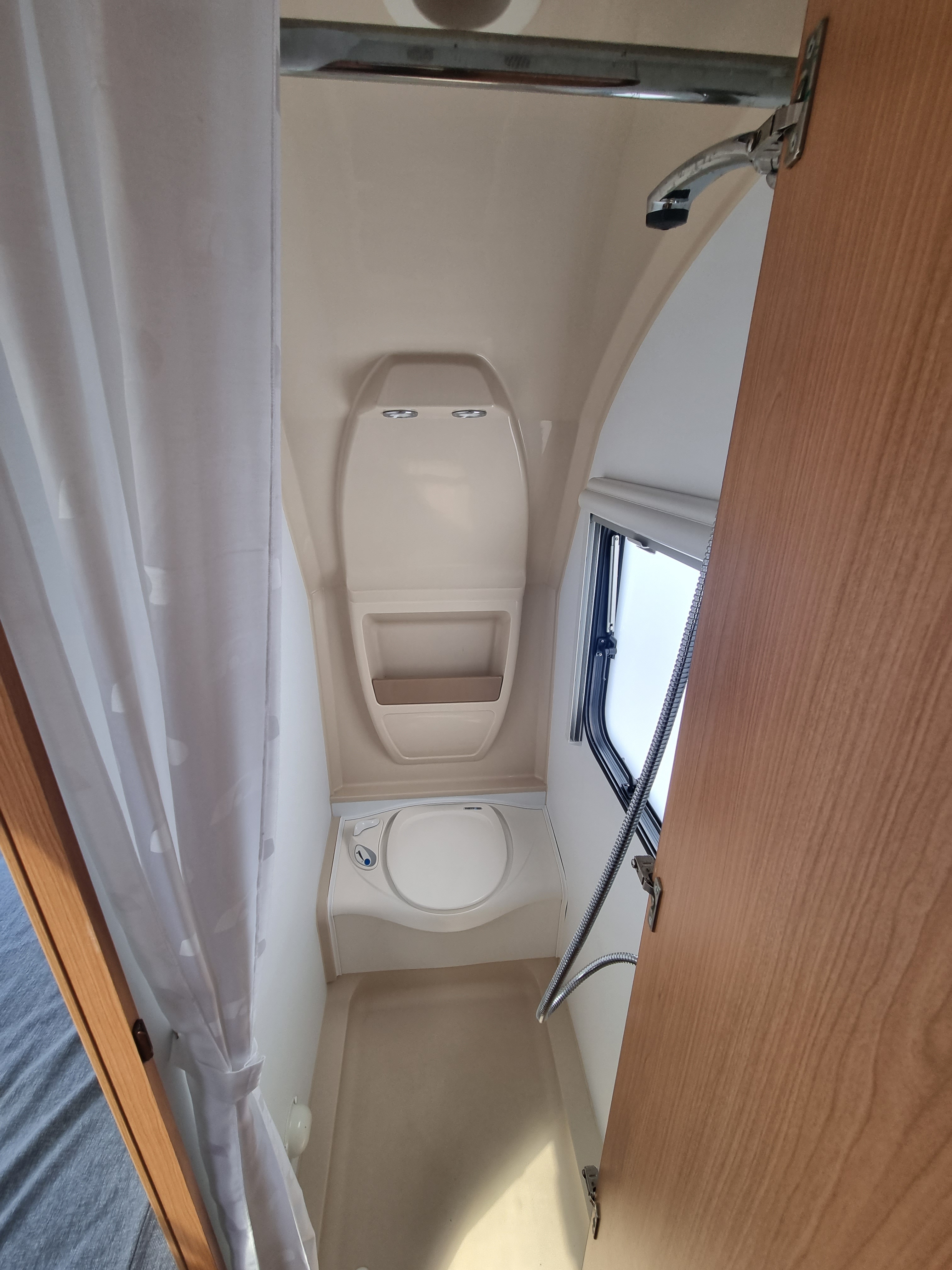 Mosogató, hűtő, tűzhely, körfűtés,mosdófülke zuhanytálcával és beépített bio-wc-vel, hideg-meleg vizrendszer, szervízajtó,kombiroló, panoráma tetőablak, külső kombi csatlakozó, stabilizátoros vonófej, caravanstore előtető, padlófűtés, mover, Truma ultraheat, 2 db-os első kerékpártartó