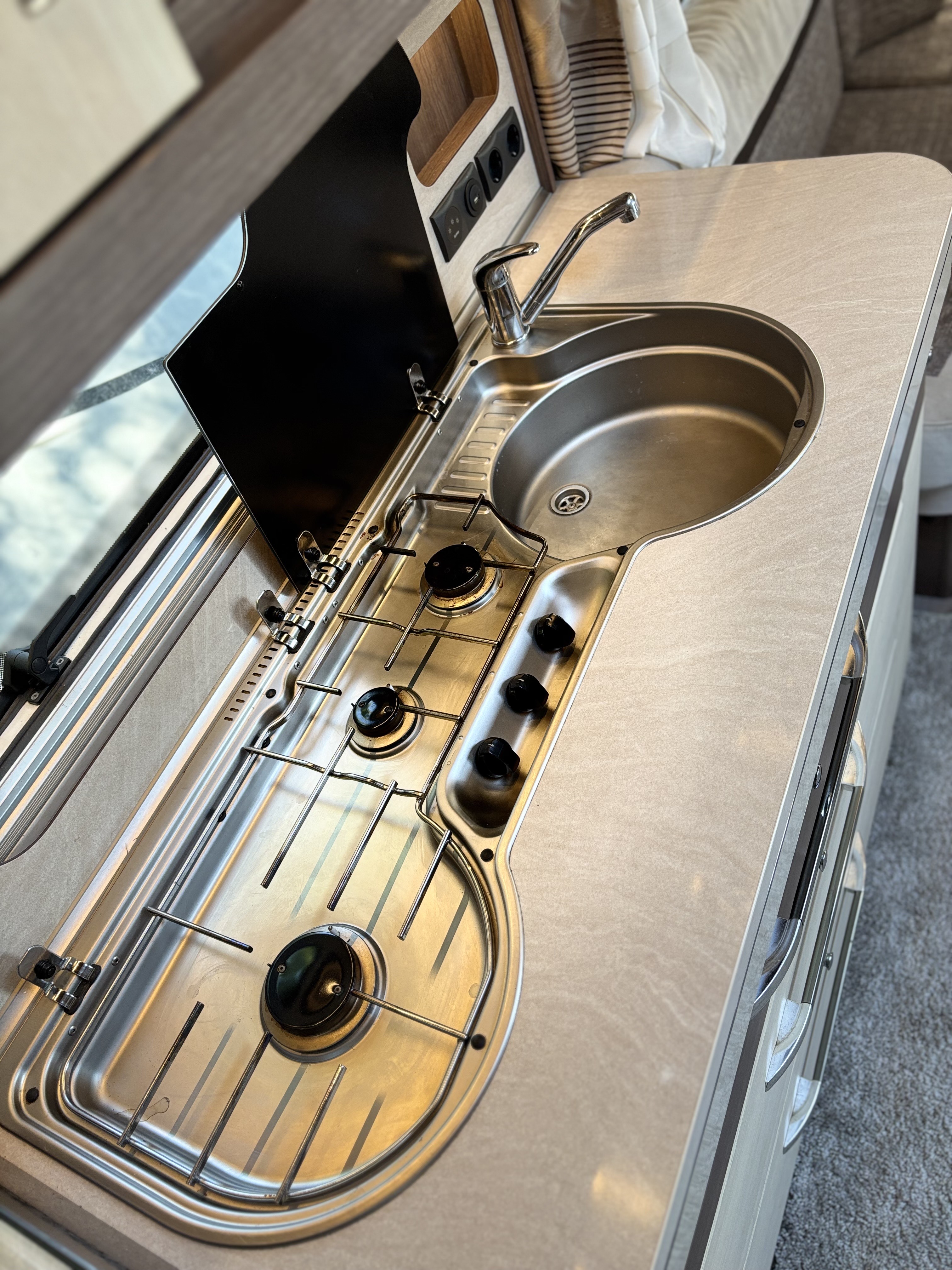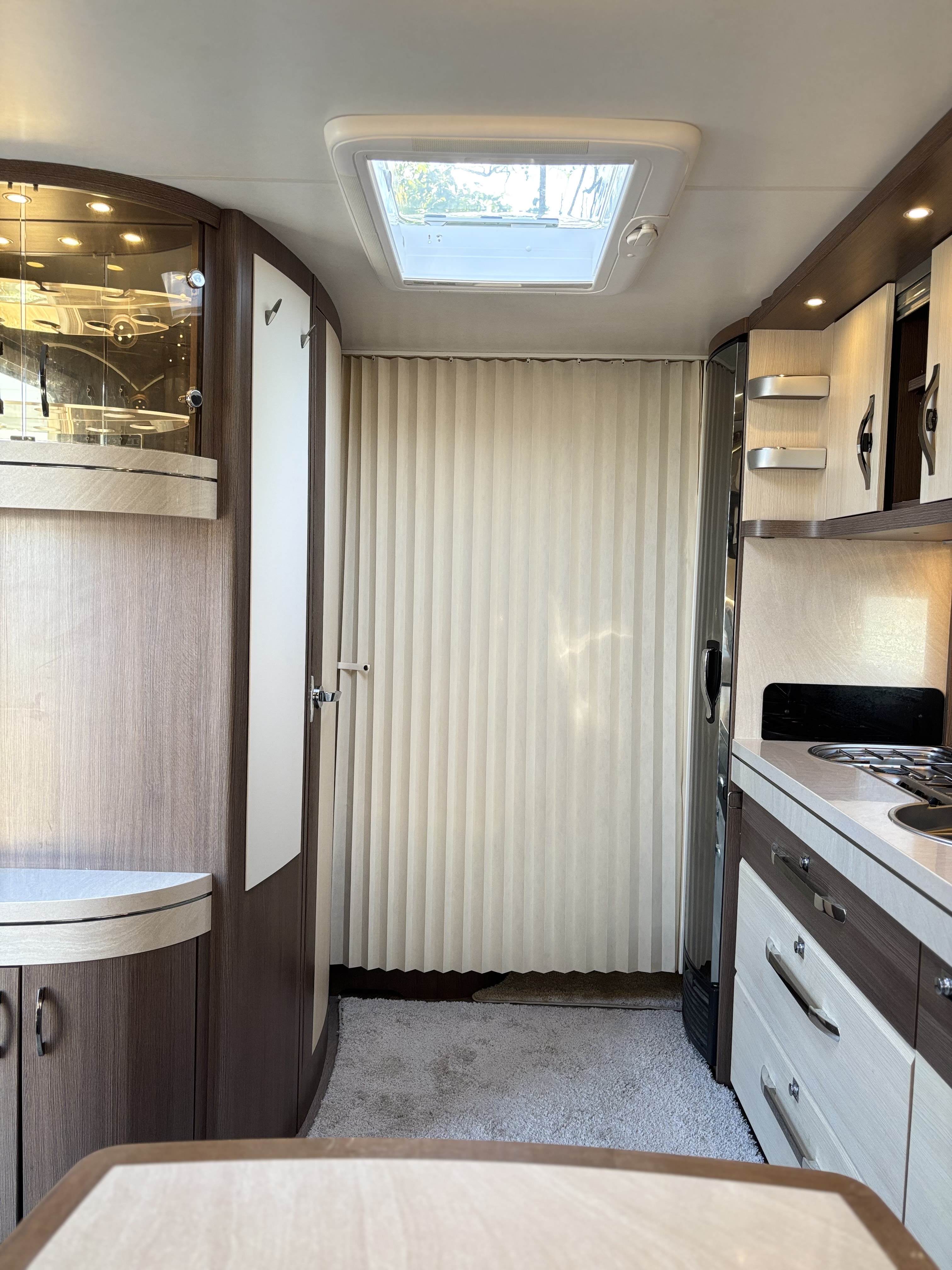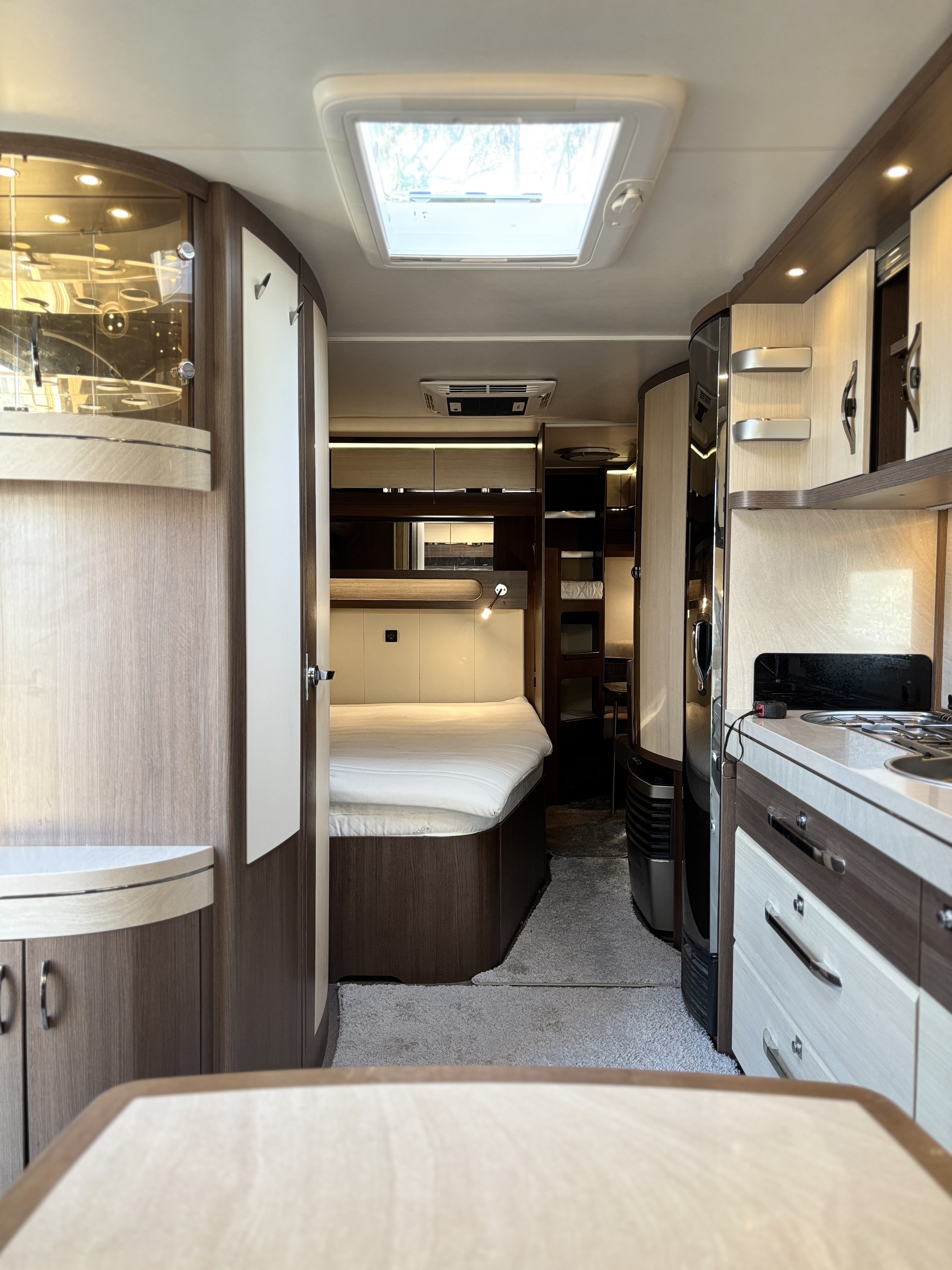 Fekvőhelyek száma: 4, mosogató, 155,5 L-es toronyhűtő 16,5L-es fagyasztóval, 3 égőfejes tűzhely, beépített mosdófülke zuhanytálcával és bio-Wc-vel, hideg-meleg vízrendszer, víztartály, szennyvíztartály, panoráma tetőablak, kombirolók, szúnyoghálós ajtó, franciaágy, térelválasztó, Truma gazkazán, Dometic tetőklíma, olvasólámpa, nagy akasztós gardróbszekrény, gyári padlószőnyeg