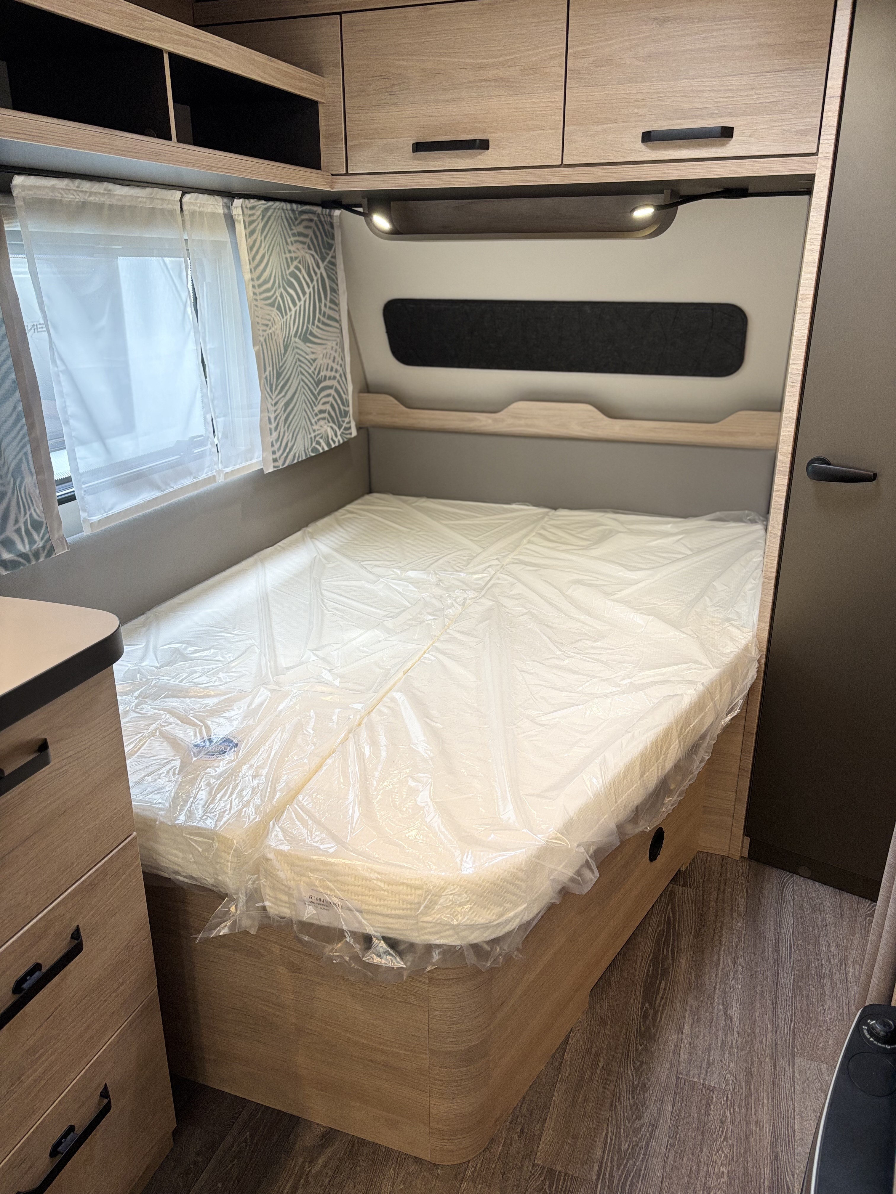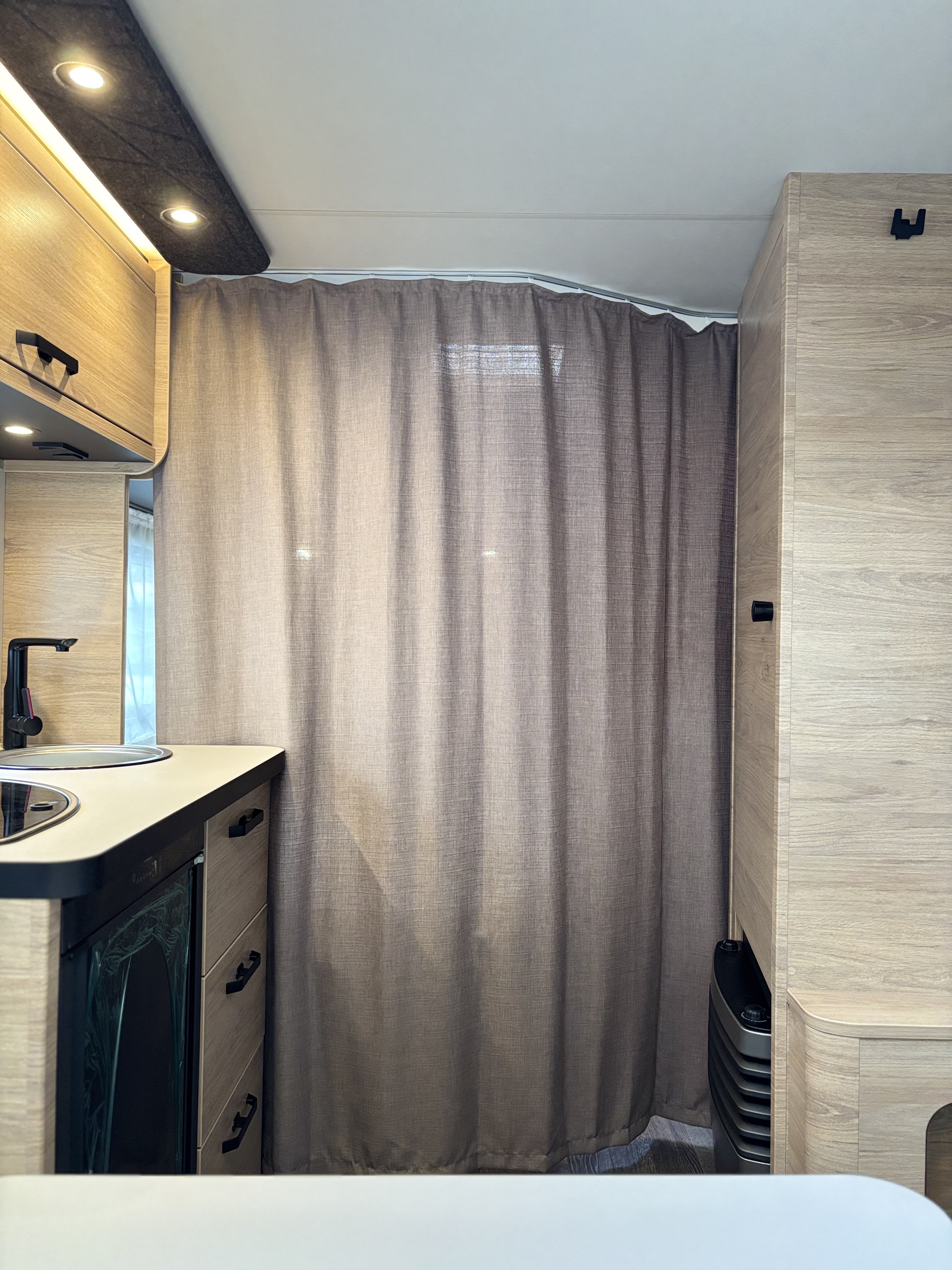 Mosogató, Dometic 98 L-es hűtő, 3 égőfejes tűzhely, mosdófülke zuhanytálcával és beépített bio-Wc-vel, kombirolók, hideg-melegvíz rendszer, 45l-es beépített víztartály, 25l-es mobil szennyvíztartály, 40x40 cm-es panoráma tetőablak, EvoPore HRC matrac, Forest kárpitozás, olvasólámpa, gardróbszekrény, Truma gázfűtés S 3004,