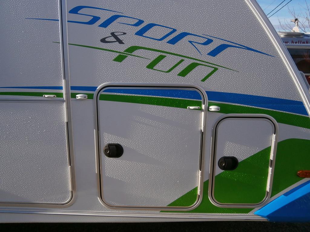 első osztott bejárati ajtó, alsó részén szemetestartóval, hátsó garázsajtó (mérete: 168x88 cm), oldalsó gáztározó (mérete: 63x55 cm), szervizajtó, stabilizátoros vonófej, hátsó létra és csomagtartó sínek a tetőn, francia ágy alatti tároló (mérete sz*h*m: 225x140/167x70 cm)