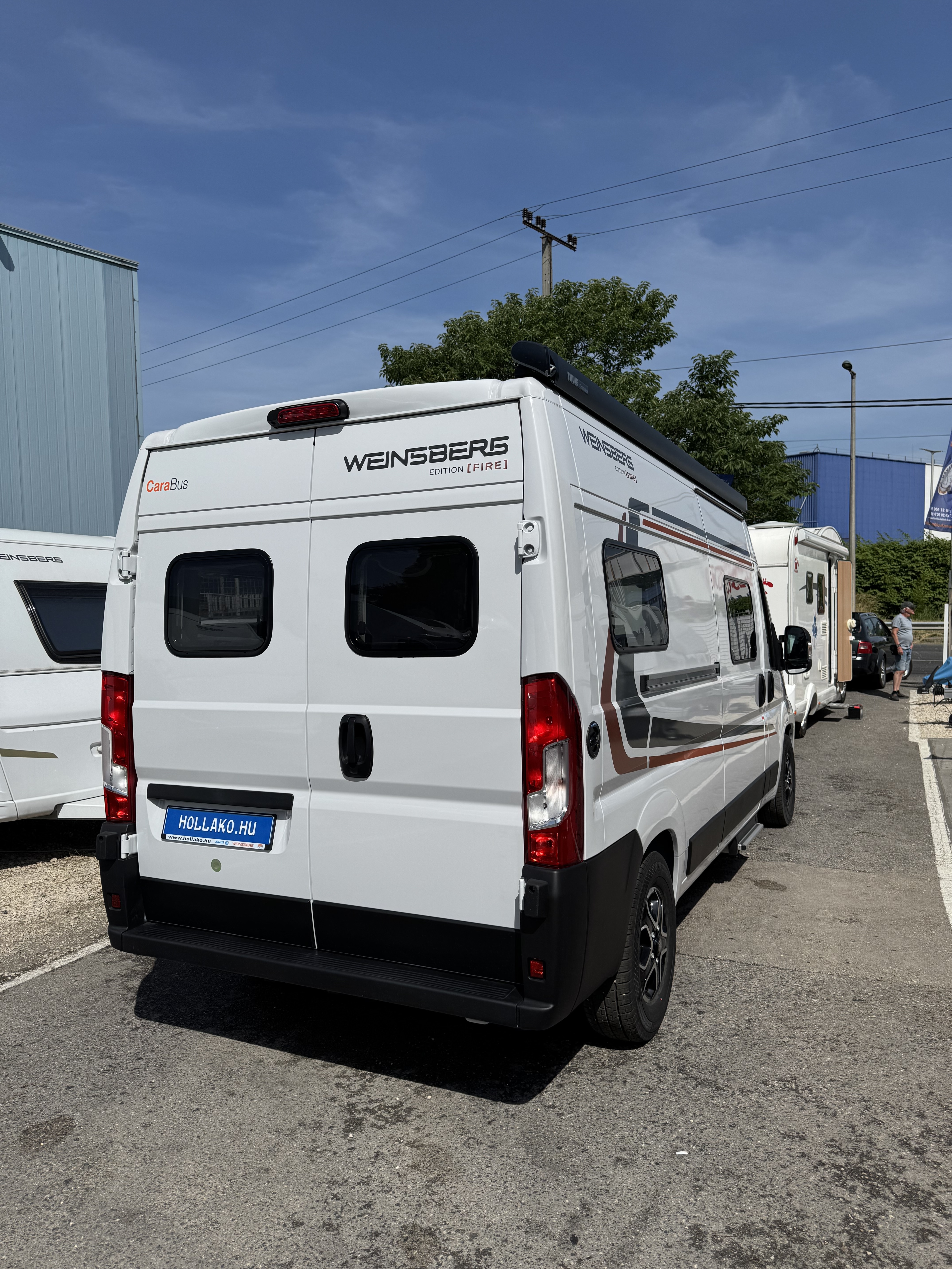 70 cm x 50 cm-es tetőablak, kifelé nyíló ablak (mellékhelyiség), bal oldali kifelé nyíló ablak, jobb oldali kifelé nyíló ablak, keretes ablak, sötétített szélvédő és oldalablak, elektromos fellépő, szúnyoghálós ajtó, tolóajtó feletti esőelvezető LED világítással, speciális Edition Fire matrica, 375 cm x 250 cm omnisztor,