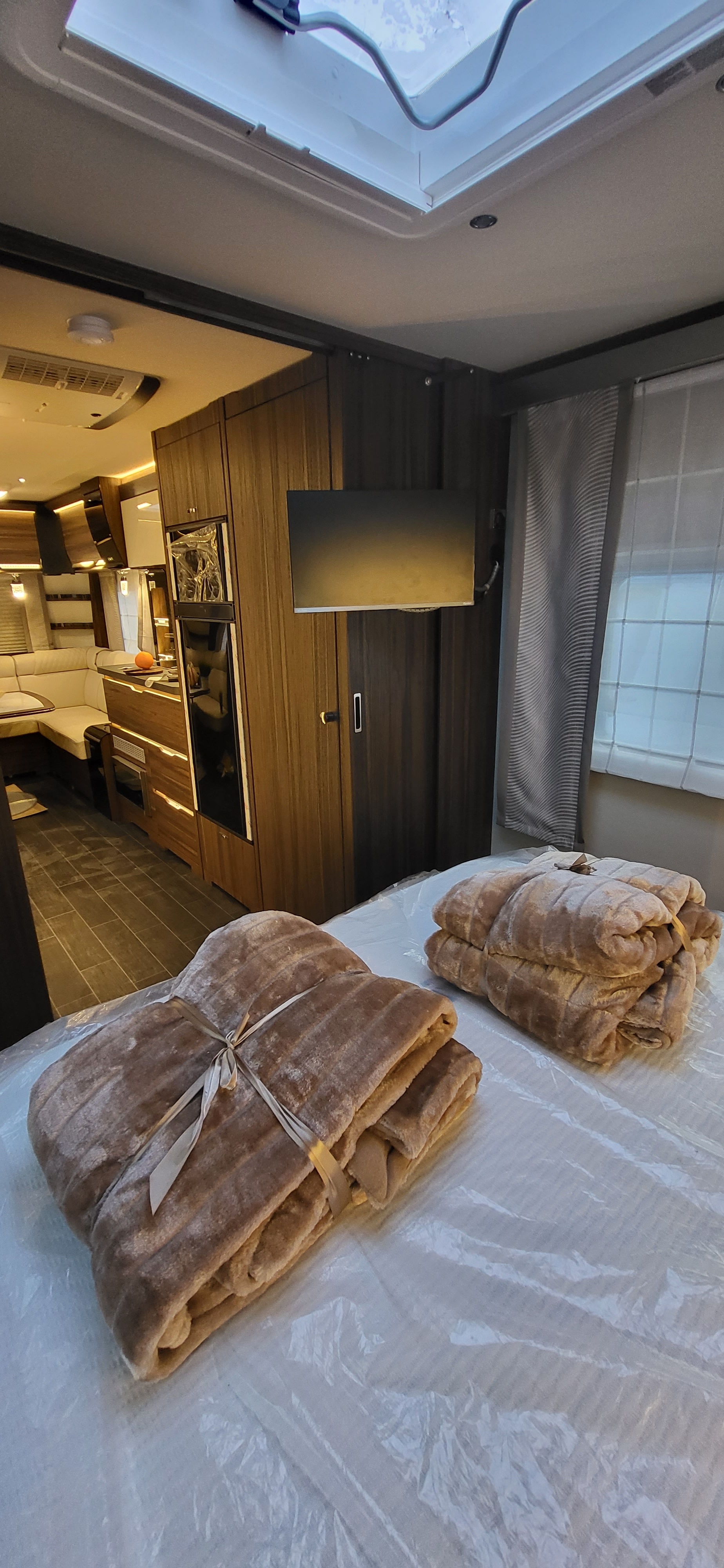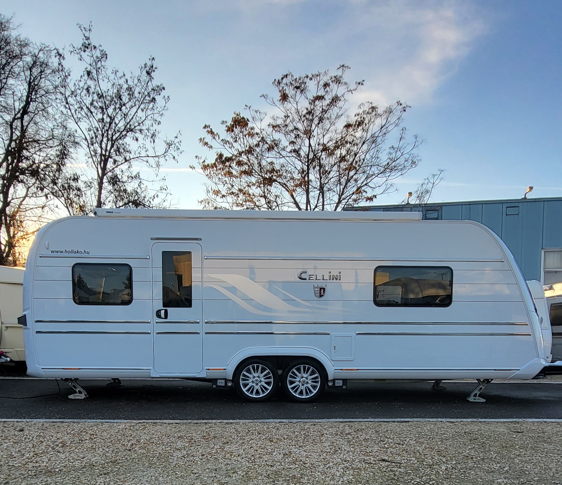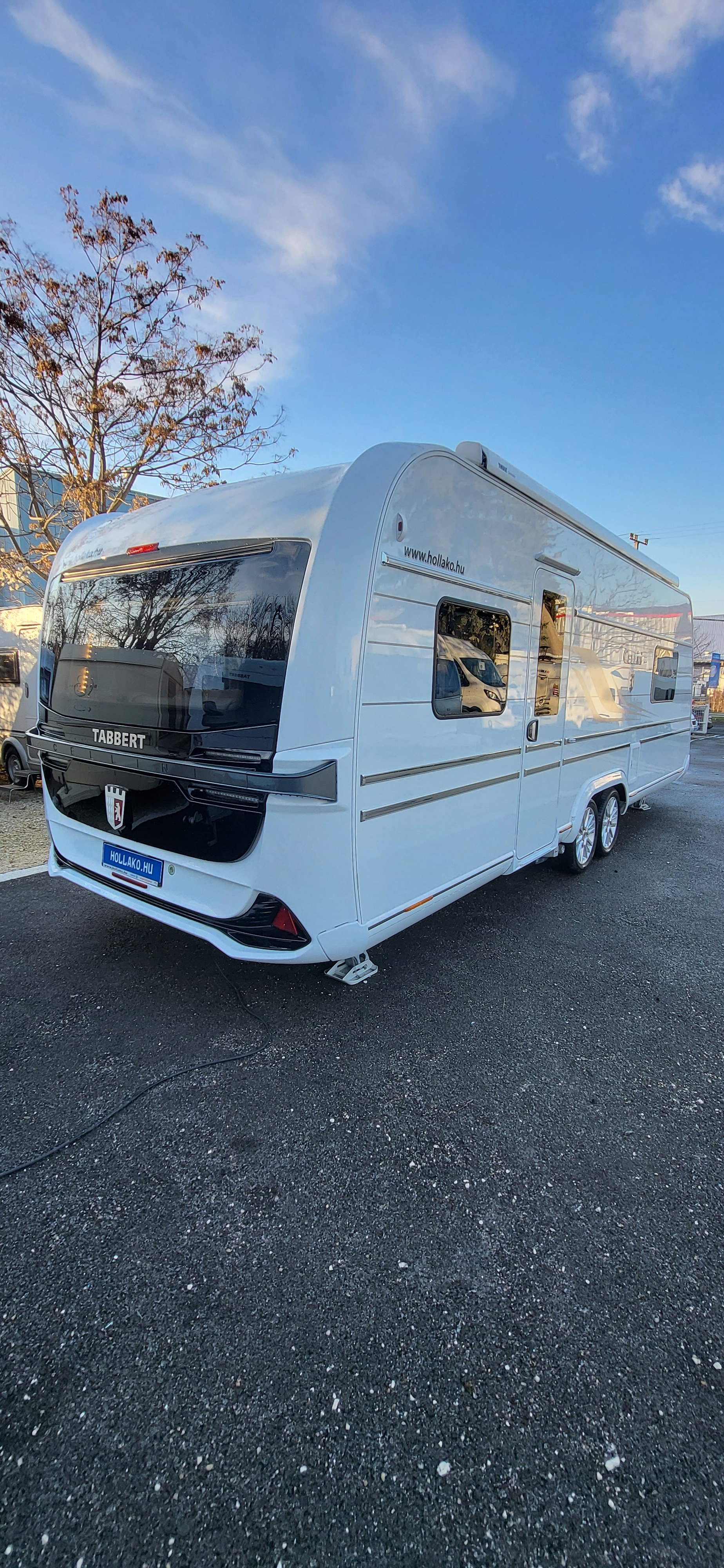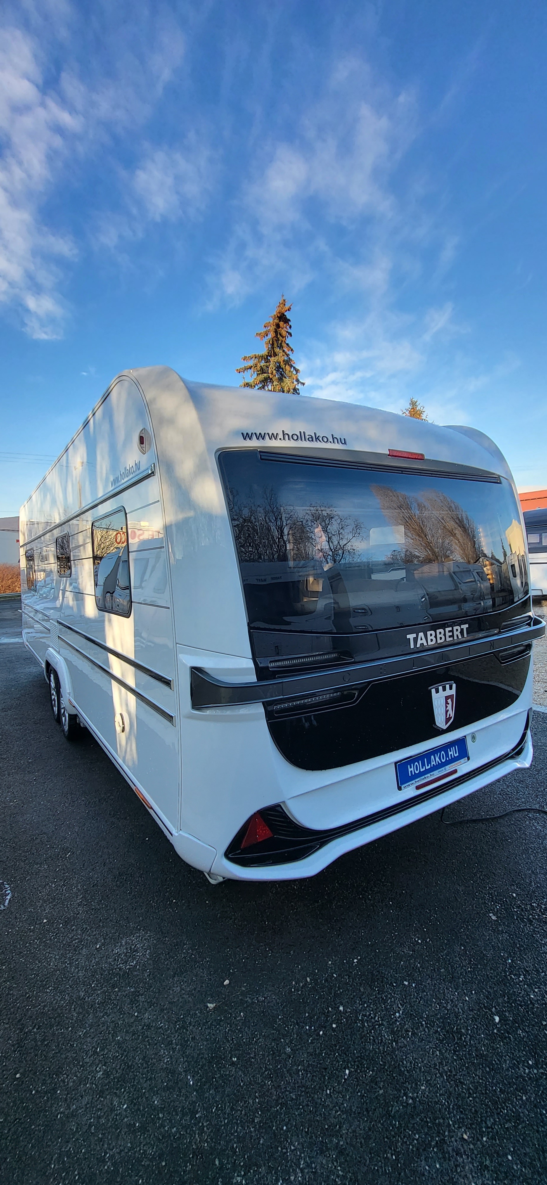 kombirolók, térelválasztó, panoráma tetőablak hátul, hangulatvilágítás, Tabbert Prémium ajtó, stabilizátoros vonófej, súlymérős orrkerék, AL-KO prémium fékrendszer, ággyá alakíható körülés, soft close fiók és szekrényajtók, Tabbert belépőfény, szén-monoxid jelző, elektromos padlófűtés, Truma Aventa 2400 W-os tetőklíma, hálózati vízcsatlakozó, 26 A-es Dometic akkumulátor töltő, AGM akkumulátor, 24 " LED TV A rendelhető lakókocsi ára alapár, a képek illusztrációk, melyek tartalmazhatnak extra felszereltséget. Az opcionális extra felszereltségekről legyen szíves kereskedésünkben érdeklődni. Extrák: - Premium Interior Package: Tabbert Comfort rugós ágybetét Watergel prémium matrac Szúnyoghálós ajtó Tisztavíz tartály szintjelző - Design Exterior Package: Sima oldallemez speciális Tabbert grafikával Dometic Seitz SP7 ablakok Fényerőszabályzós külső LED világítás - Connected Security Package Velocate gáz, hőmérséklet, szenzorok, mozgásérzékelők Velocate nyomonkövetés az EU területén - Hidraulikus letalpaló és szintező rendszer AL-KO Big Foot támasztalpakkal - Erősített alváz ( 2760 kg ) - 17 " könnyűfém felni Tabbert design - 17" könnyűfém pótkerék a gáztározóban - Truma XT 4 mover tandem alvázas lakókocsikhoz - 960x650 cm-es panoráma tetőablak a hálószobában - TVT ( Top Value Technology ) vázrendszer -Krómozott külső díszléc - Cream Nature bőr kárpit fejtámlával, állítható ülés keménységgel - Truma Duo-Control Eis Ex reduktor fűtéssel -75 L-es padlóba integrált tisztavíz tartály - ALDE radiátoros gázos és elektromos fűtés és bojler - Alváz alatti LED díszvilágítás - Oyster Twin antenna csomag - 21,5 " LED TV a hálórészben - Thule 4,5 méteres tetőre szerelt omnistor